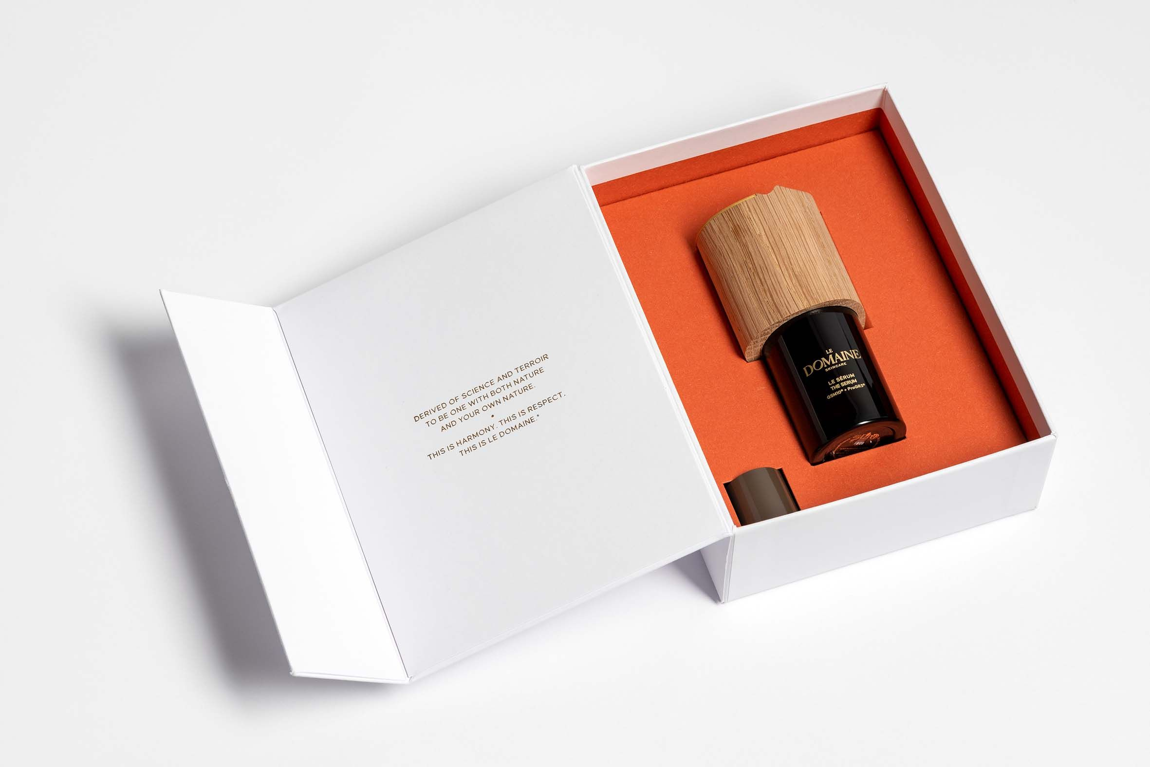 Τα αντιοξειδωτικά είναι οι βασικοί πρωταγωνιστές του Le Domaine, με τα τέσσερα προϊόντα να έχουν ως στόχο την επιβράδυνση της διαδικασία γήρανσης. Η γυάλινη και ξύλινη συσκευασία τους είναι εμπνευσμένη από τη φύση και το κρασί, ενώ έχουν ένα «ελαφρύ, κομψό, χωρίς φύλο» άρωμα που δημιουργήθηκε από έναν αρωματοποιό στη Grasse, με άνθη πορτοκαλιάς, ξυλώδη κέδρο και σανταλόξυλο.