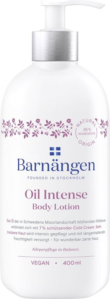 Οι φόρμουλες της νέας σειράς Barnängen Oil Intense είναι σχεδιασμένες για να παρέχουν εντατική ενυδάτωση σε πολύ ξηρό δέρμα. Η σειρά είναι εμπνευσμένη από τη σκανδιναβική φύση και τα πανέμορφα άγρια τριαντάφυλλα. Το καλοκαίρι,τα άγρια τριαντάφυλλα ανθίζουν στα λιβάδια δίπλα στην θάλασσα και αναδύουν ένα διακριτικό άρωμα από τα ροζ τους πέταλα. Το έλαιο τριαντάφυλλου θεωρείται ως ένα εξαιρετικό συστατικό υψηλής ποιότητας, γι’ αυτό χρησιμοποιείται σε όλη τη σειρά Barnängen Oil Intense σε συνδυασμό με προστατευτική cold cream, ώστε να παρέχει στην πολύ ξηρή επιδερμίδα εντατική φροντίδα.