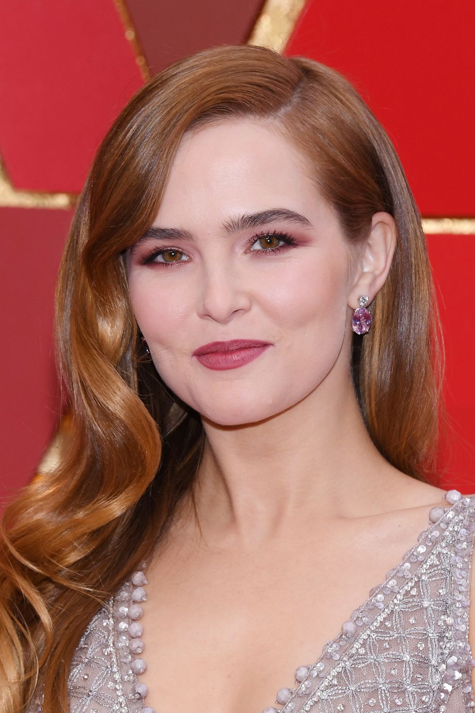 Η ηθοποιός επιστρέφει στο strawberry blond και τα μαλλιά της λάμπουν πιο πολύ από ποτέ αφού παίρνουν επιπλέον χρώμα από το ρουμπινί σακάκι της.