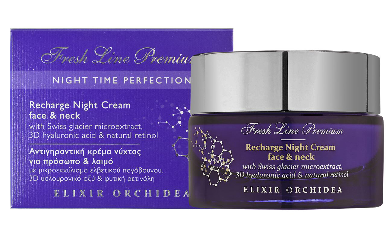 Αντιγηραντική κρέμα νύχτας για πρόσωπο και λαιμό, Elixir Orchidea Premium Recharge Night Cream, Fresh Line