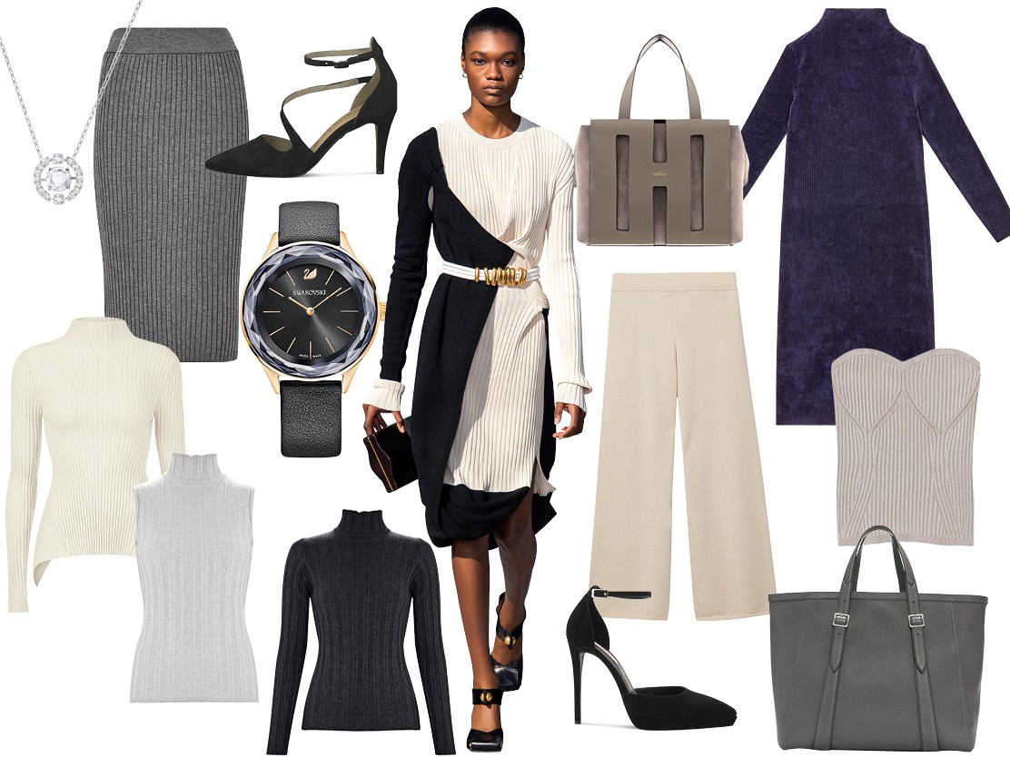 Φίνα πλεκτά σε ριμπ ύφανση μιξάρονται μεταξύ τους σε ουδέτερη χρωματική παλέτα