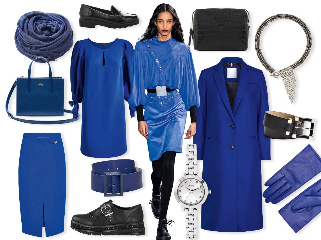 Μπλε μαρέν: Η ζωηρή απόχρωση του εικαστικού Υβ Κλαϊν έχει ως καμβά θηλυκές σιλουέτες που συνδυάζονται ιδανικά με μαύρα αξεσουάρ