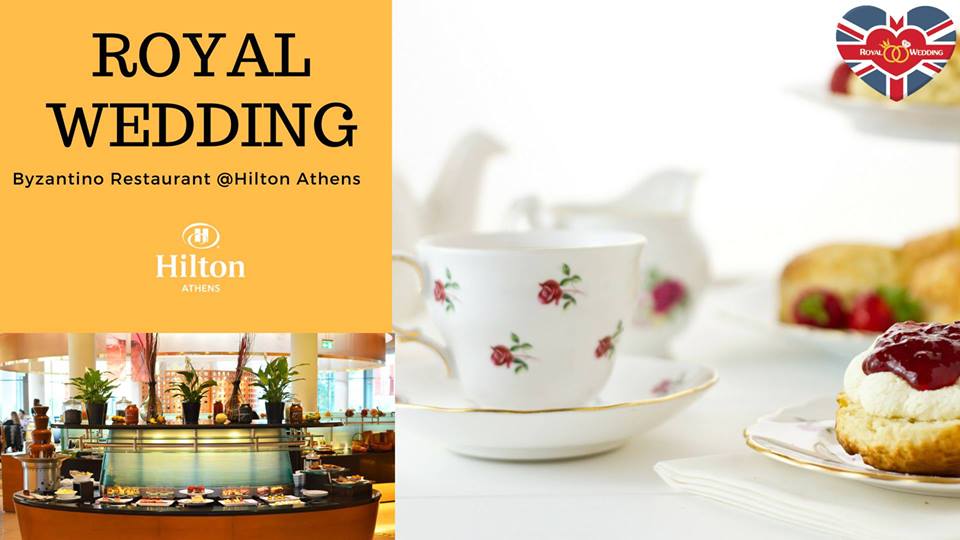 Παρακολουθήστε σε απευθείας σύνδεση τον διασημότερο γάμο της χρονιάς μεταξύ της δεσποινίδας Meghan Markle και του πρίγκιπα Harry της Ουαλίας απολαμβάνοντας ένα lunch buffet με παραδοσιακές Βρετανικές γεύσεις το Σάββατο, 19 Μαΐου, 12:30-17:00 στο Byzantino Restaurant – Hilton Athens. Για κρατήσεις και πληροφορίες, τηλεφωνήστε στο 210 7281400.