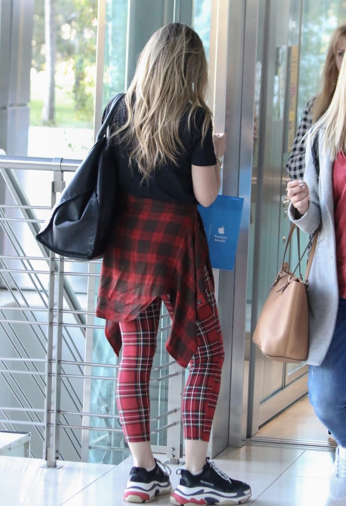 Φόρεσε κολάν με κόκκινο καρό pattern συνδυασμένο με ένα μαύρο T-shirt. Στη μέση της είχε δεμένο ένα πουκάμισο με διαφορετικό καρό pattern και κρατούσε μία μαύρη oversized τσάντα. Επίσης, προτίμησε ένα διακριτικό αλλά fashionable ζευγάρι μαύρα μικρά cat eye γυαλιά ηλίου. Το πιο εντυπωσιακό στοιχείο του look της ήταν όμως τα “άσχημα” sneakers, τα οποία αποτελούν παγκοσμίως μια από τις πιο must τάσεις.