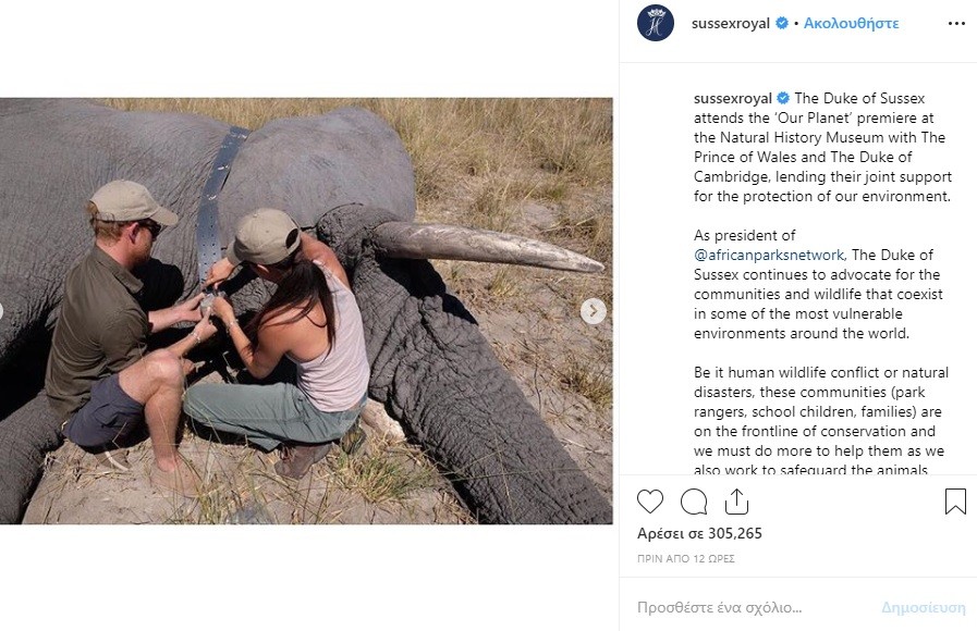Αυτή η #tbt φωτογραφία μας συγκίνησε ιδιαίτερα διότι μας έδειξε πως οι δυο τους είναι πραγματικά ευαισθητοποιημένοι όσον αφορά στα ζώα και το είδαμε στην πράξη. Μάλιστα ο Harry χθες παρακολούθησε μαζί με τον Κάρολο και το William ένα ντοκιμαντέρ του Netflix σχετικά με την κλιματική αλλαγή. Εδώ θα πρέπει να θυμίσουμε ότι ο Πρίγκιπας Harry είναι πρόεδρος των @AfricanParks και ενδιαφέρεται για το περιβάλλον και την άγρια ζωή.