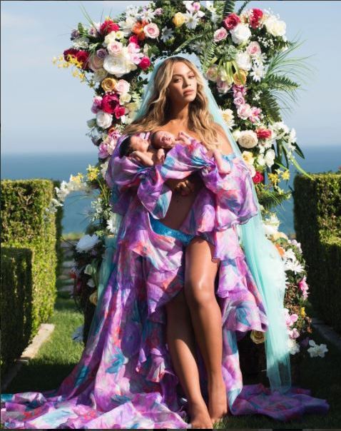 Ετσι λοιπόν την είδαμε στο instagram (@beyonce) τις πρώτες πρωινές (για εμάς) ώρες της Παρασκευής να ποζάρει με το σέξι εμπριμέ Palomo Spain φόρεμά της, κρατώντας τα μόλις ενός μήνα δίδυμα Sir Carter και Rumi και αποκαλύπτοντας, εκτός από υπέροχα πόδια και μία πολύ σέξι κοιλιά, την ημερομηνία γενεθλίων τους, στις 13 Ιουνίου. (Την πόζα Αφροδίτης του Μποτιτσέλι με μία ιδέα μεξικανής Madonna με φόντο ανθοστήλη ας πούμε ότι την περιμέναμε, μετά από την ανάλογης ατμόσφαιρας αναγγελία της εγκυμοσύνης).