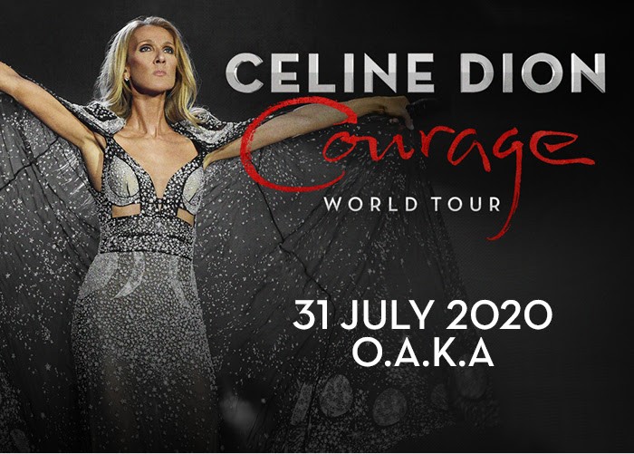 Η ιέρεια της pop, η λαμπερή Celine Dion, έρχεται στη χώρα μας στις 31 Ιουλίου 2020 στο πλαίσιο της παγκόσμιας περιοδείας της, COURAGE WORLD TOUR φέρνοντας στις αποσκευές τις αγαπημένες μας επιτυχίες καθώς και το νέο ομώνυμο άλμπουμ της.