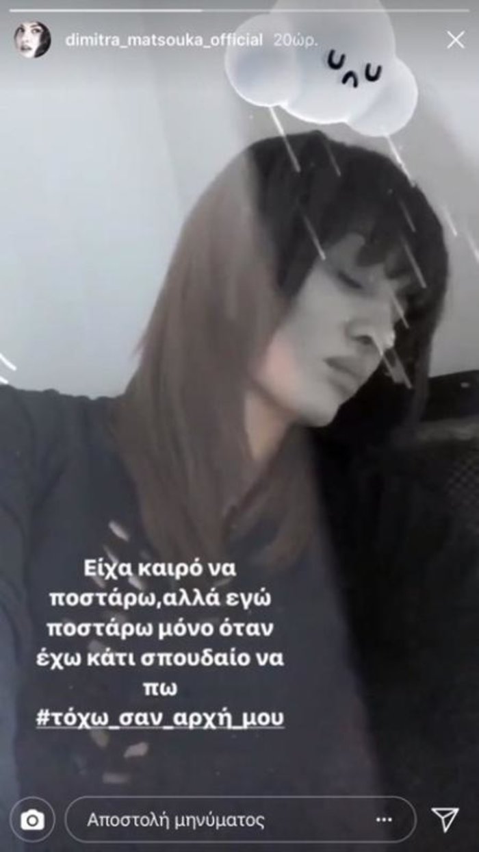 Ανέβασε ένα story στο instagram γράφοντας γράφοντας: «Είχα καιρό να ποστάρω αλλά εγώ ποστάρω μόνο όταν έχω κάτι σπουδαίο να πω. Το έχω σαν αρχή μου».