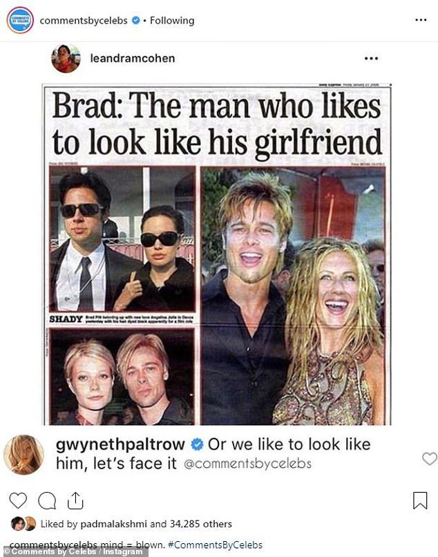 Η Γκουίνεθ τρολάρει τον Μπραντ Πιτ. Αντιδρώντας με χιούμορ σε μια ανάρτηση του Instagram σχετικά με το πώς ο Μπραντ Πιτ πάντα αντέγραφε τις γυναίκες της ζωής του, η πρώην αρραβωνιαστικά του, Γκουίνεθ Πάλτροου, ανέβασε ένα σχόλιο-αν και φαινομενικά υποστηρικτικό- απόλυτα υπαινικτικό για τον πρώην της.