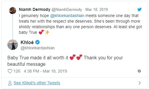Όλο αυτό το δράμα λοιπόν που βιώνει η Khloe με τον Tristan που αλλάζει τις ερωμένες σαν τα πουκάμισα και μάλιστα δεν διστάζει να την απατήσει τόσο με πολλές άλλες γυναίκες ταυτόχρονα όσο και με την καλύτερη φίλη της αδερφής της, η ίδια πιστεύει ότι τελικά αξίζει τον κόπο, όπως απάντησε σε έναν fan της το twitter.