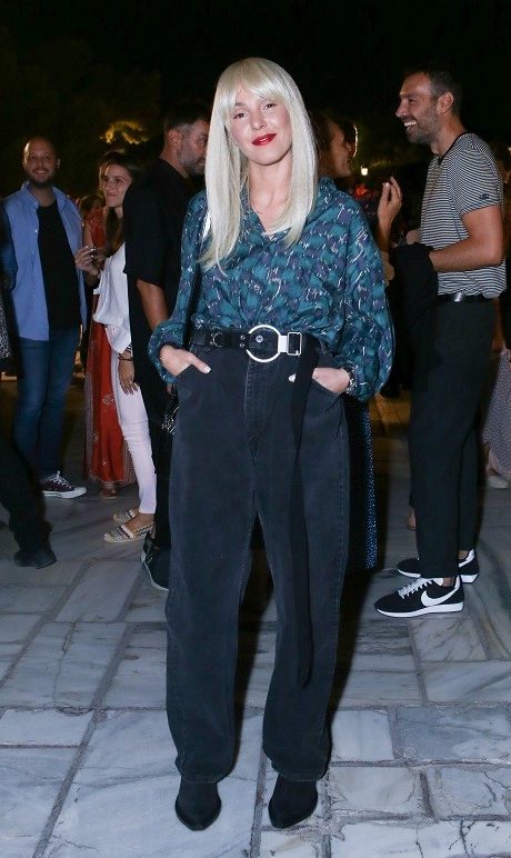 Αυτή τη φορά προτίμησε μια πλατινέ περούκα με αφέλειες και ένα μαύρο denim οversized παντελόνι το οποίο συνδύασε με ένα πράσινο πουκάμισο για να παρακολουθήσει τη συναυλία της Florence and the machine η οποία έγινε στο Ηρώδειο και ήταν sold out μόλις λίγη ώρα μετά τη διάθεση των εισητηρίων στο κοινό.