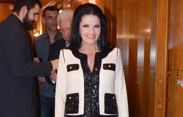 Η “βασίλισσα της νύχτας” εμφανίστηκε στην avant premiere της παράστασης “Μαριχουάνα STOP” των Γιάννη Δαλιανίδη -Μίμη Πλέσσα στο θέατρο Μπουρνέλη.