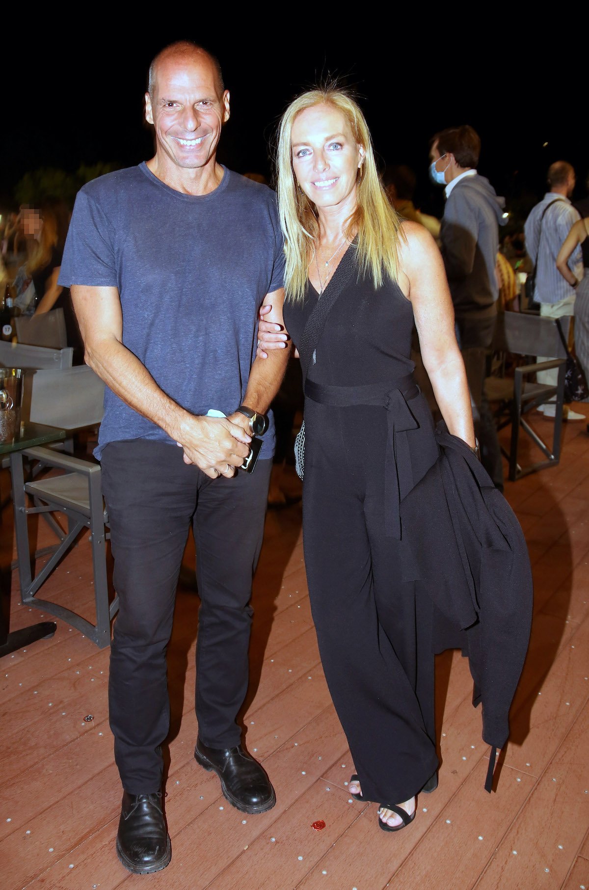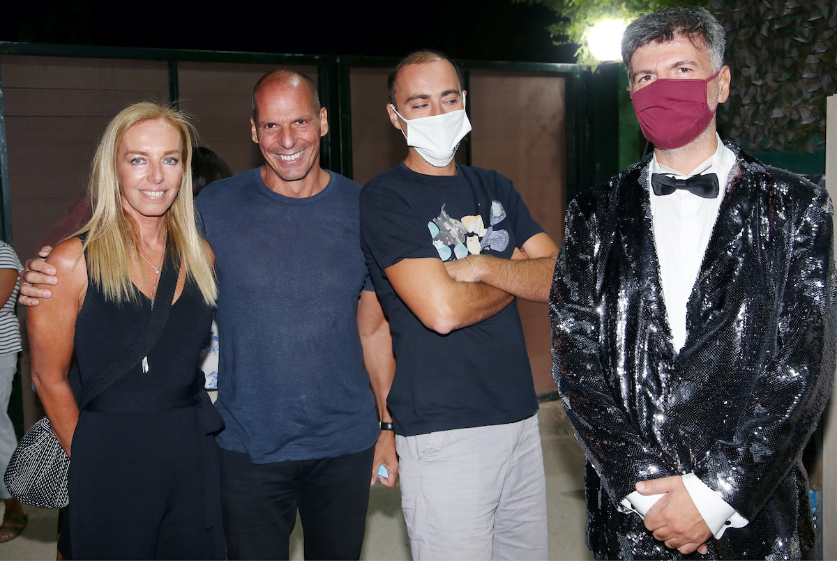 Η εικαστικός απαθανατίστηκε με τον σύζυγό της, Γιάνη Βαρουφάκη στο Θέατρο Άλσος, όπου παρακολούθησαν τον Φοίβο Δεληβοριά. Το ζευγάρι πόζαρε μάλιστα με τον καλλιτέχνη, όπως και με τον συνεργάτη του, Θανάση Αλευρά.
