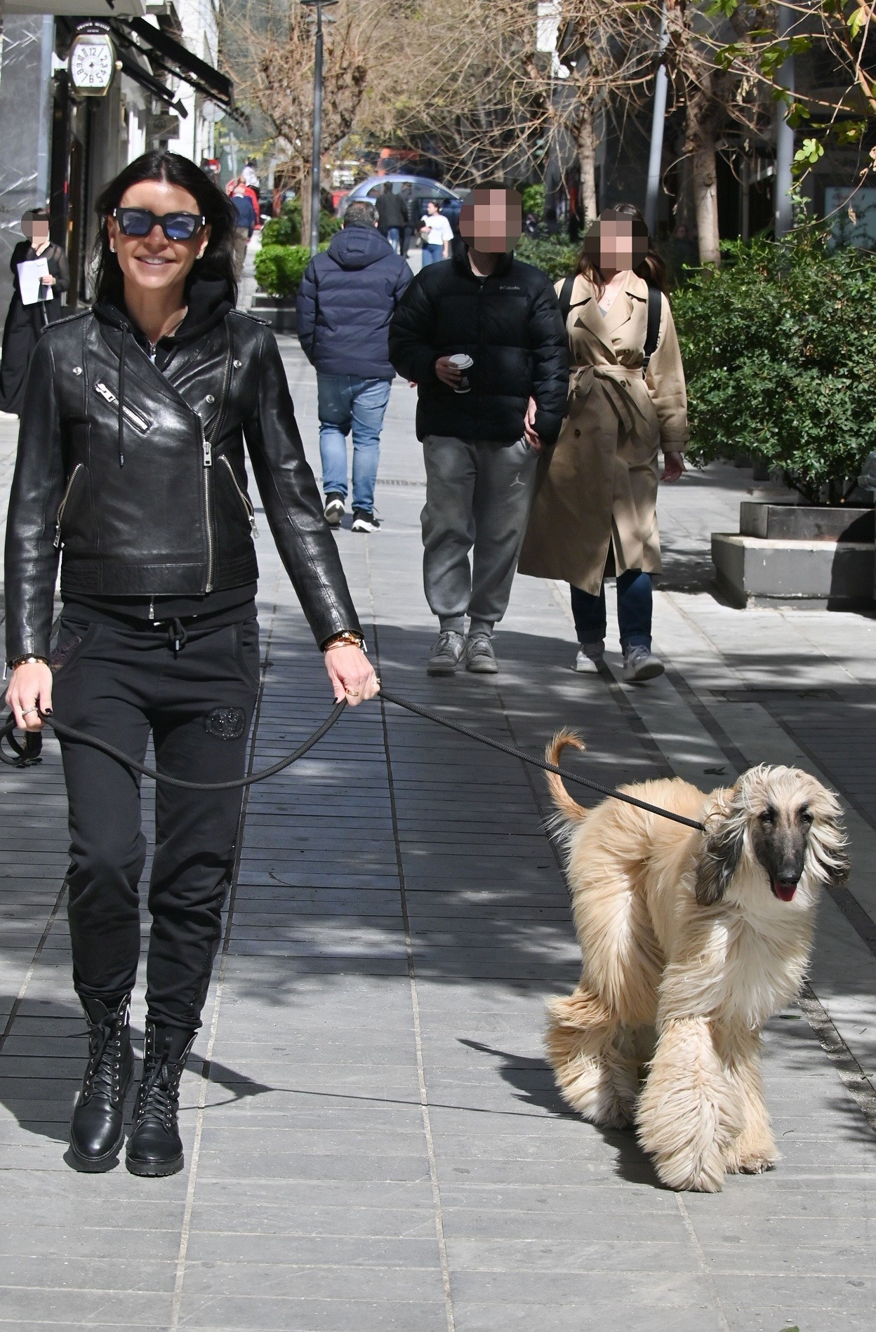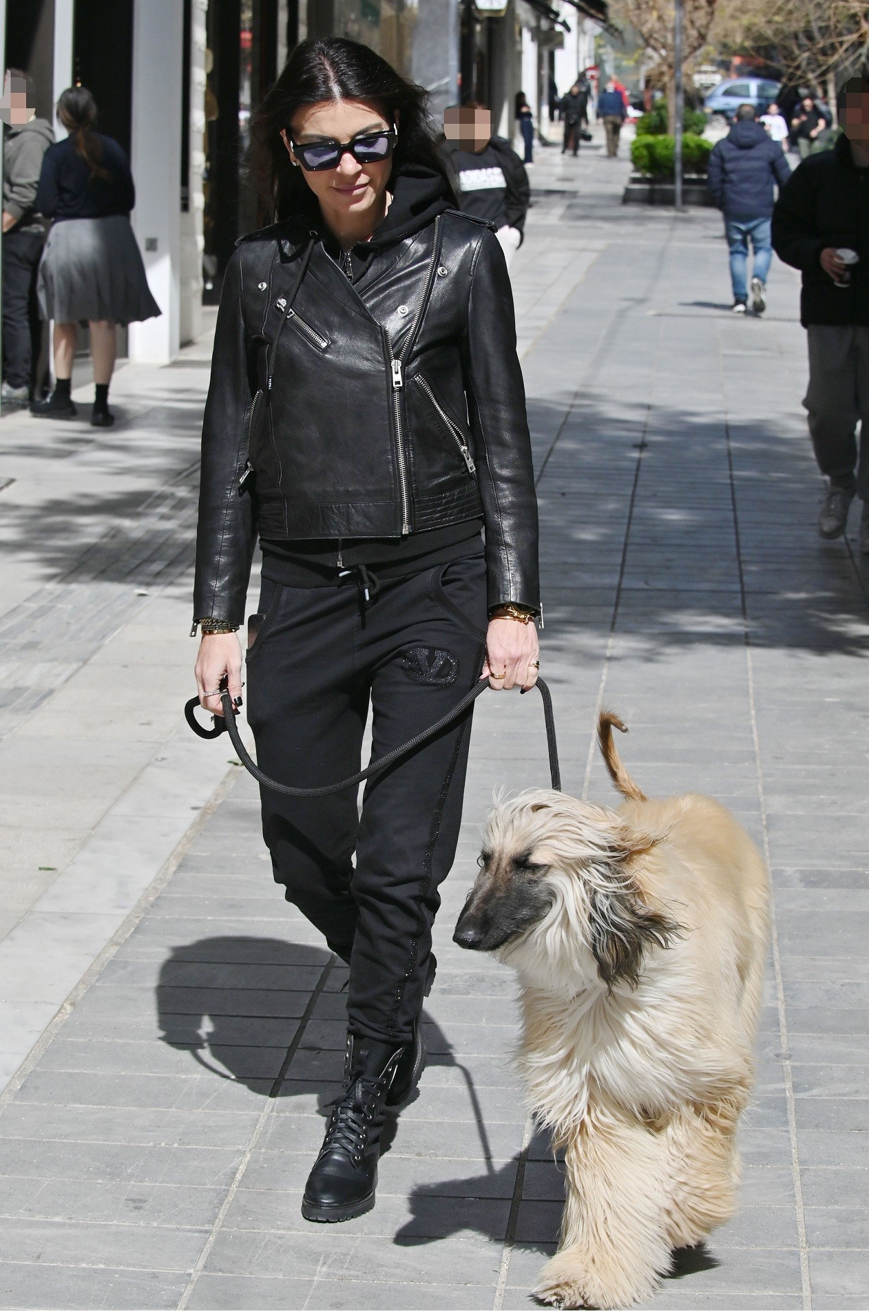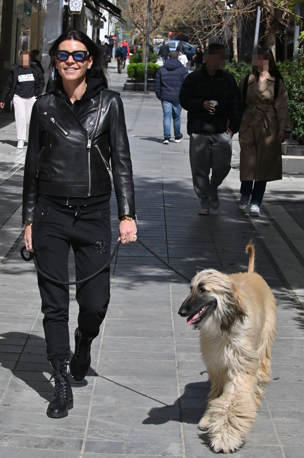 Στο κέντρο της Αθήνας βρέθηκε η Μαρίνα Βερνίκου, παρέα με ένα από τα αγαπημένα της κατοικίδια, τη σκυλίτσα της, Νουρ. Η γνωστή φωτογράφος και επιχειρηματίας απήλαυσε την ηλιόλουστη βόλτα της στο κέντρο της πόλης, φορώντας ένα μαύρο σύνολο, που συνέθεταν ένα μαύρο παντελόνι σε ίσια γραμμή, μαύρο, δερμάτινο jacket και μαύρα, biker boots. Ολοκλήρωσε το σύνολό της με τα αγαπημένα της μαύρα γυαλιά και χαμογέλασε στους φωτογράφους.