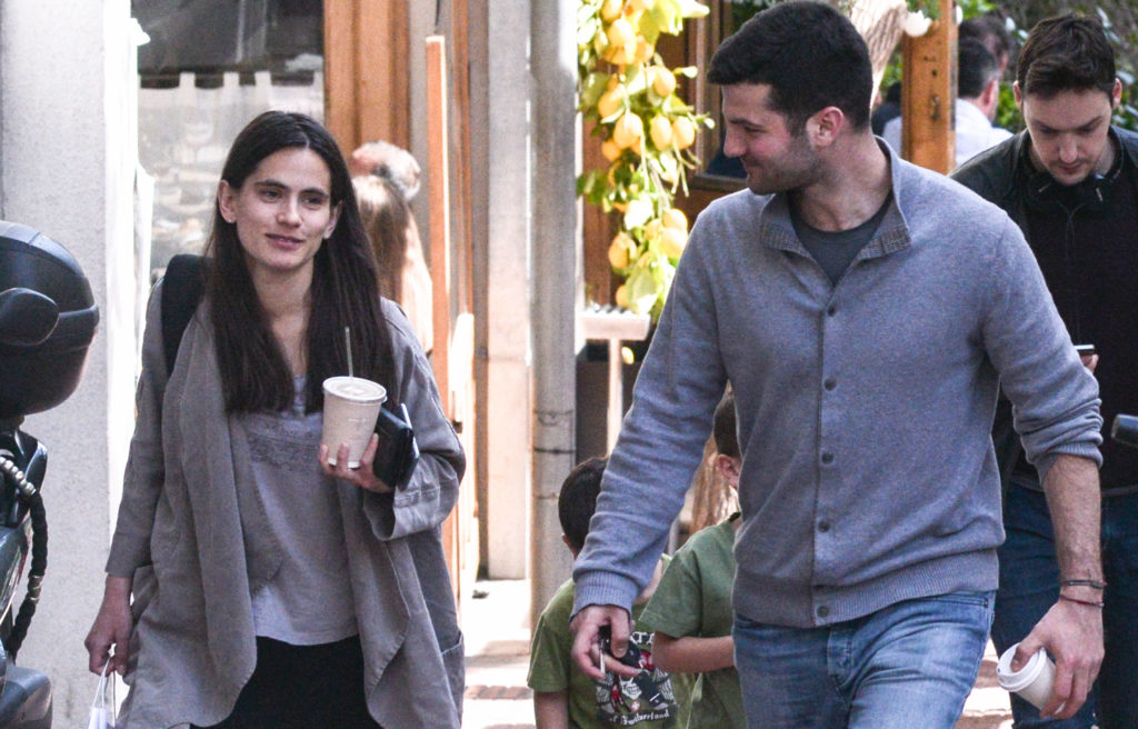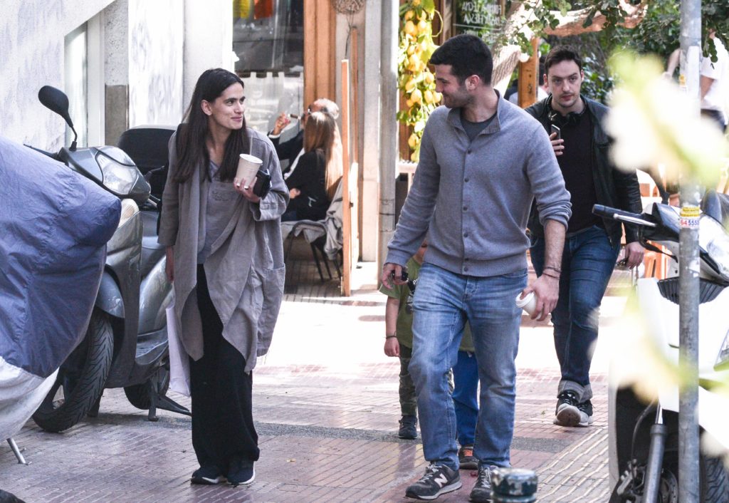 Ο φωτογραφικός φακός τους απαθανάτισε σε μια βόλτα στην πόλη ντυμένους casua να απολαμβάνουν ένα ρόφημα περπτώντας μαζί με τα δυο παιδιά τους.