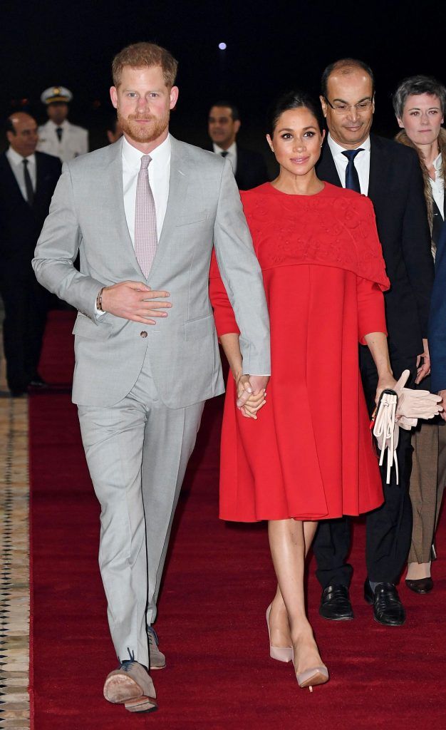 Ως γνήσια Αμερικάνα που είναι συνηθισμένη στα σκάνδαλε, η Μέγκαν Μαρκλ φόρεσε και πάλι τη «στολή» και το χαμόγελο της δούκισσας του Σάσεξ, ένα κόκκινο Valentino φόρεμα, nude Dior γόβες, ασορτί γάντια και clutch.