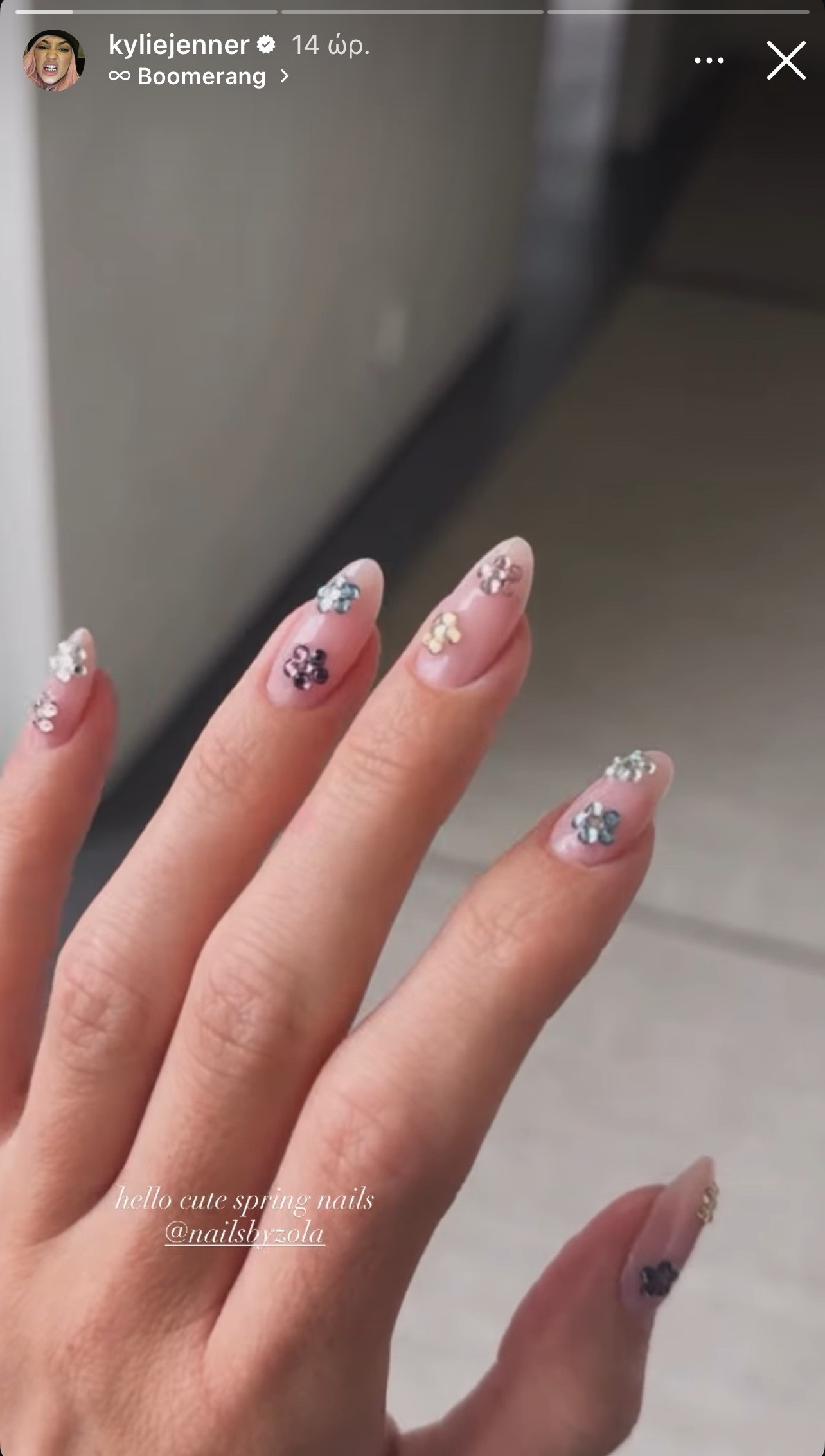 Τις φωτογραφίες, συνόδευε η λεζάντα «Hello cute spring nails», ενώ φυσικά, αναφέρθηκε και η nail artist που επιμελείται σχεδόν πάντα τα νύχια της Jenner, η Zola Ganzorigt, γνωστή στο Instagram ως @nailsbyzola.