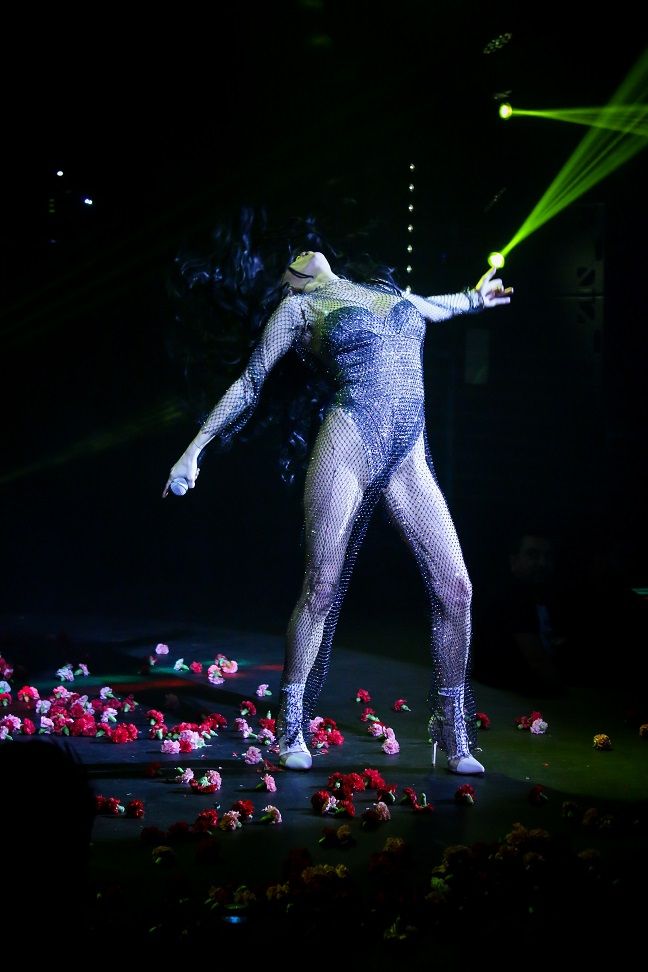 Η ροκ σταρ του λαϊκού ρεπερτορίου έκανε πρεμιέρα στο ΓΚΑΖΙ LIVE και ήταν πραγματικά εκτυφλωτική : Φόρεσε ένα κορμάκι με παγιέτες του έλληνα σχεδιαστή Νίκου Σφυρή από τη Θεσσαλονίκη με τον οποίο συνεργάζεται σε μόνιμη βάση και ολόσωμη φόρμα από δίχτυ επίσης του ιδίου ενώ ολοκλήρωσε το look με λευκά πέδιλα τα οποία σχεδιάζει και πάλι ειδικά για εκείνη ο υποδηματοποιός Κοκός. Μάλιστα ο δημιουργός των παπουτσιών της κάθε φορά τα σχεδιάζει για να ταιριάζουν με το εκάστοτε outfit.