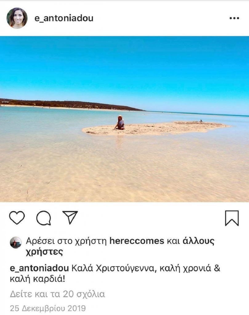 Η Ελένη Αντωνιάδου και η υποτιθέμενη θητεία της στην NASA απασχόλησε πολύ την επικαιρότητα τους προηγούμενους μήνες. Η 32χρονη επιστήμονας όμως πλέον έχει αποσυρθεί από τα φώτα της δημοσιότητας και απολαμβάνει την ηρεμία της. Αυτό δείχνει και η φωτογραφία που μοιράστηκε στο instagram της ανήμερα των Χριστουγέννων στην οποία διακρίνεται η ίδια να ποζάρει σε μια εντυπωσιακή παραλία. “Καλά Χριστούγεννα, καλή χρονιά και καλή καρδιά” ήταν η λεζάντα που τη συνόδευσε.