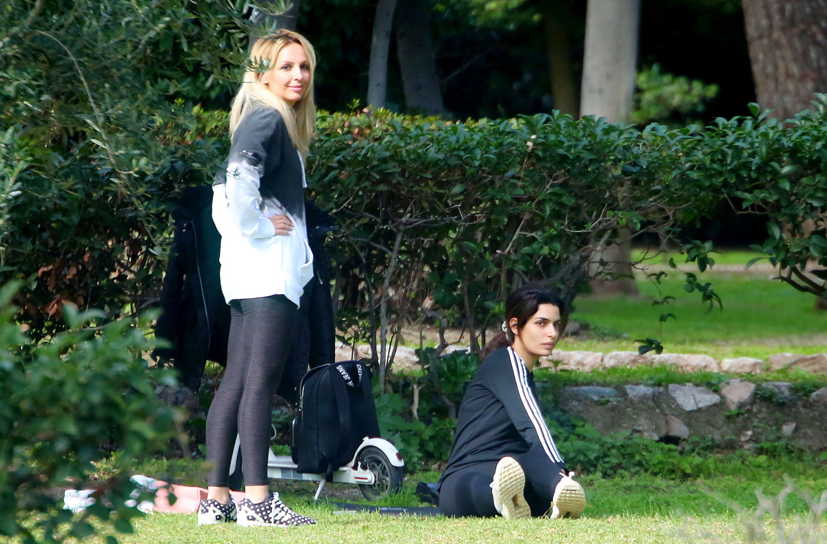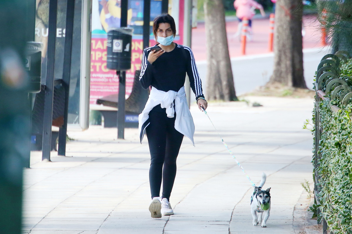 Η ηθοποιός απαθανατίστηκε και αυτή τη φορά στο συγκεκριμένο πάρκο παρέα με τον σκύλο της, τη Στέλλα. Λίγο νωρίτερα η Τόνια Σωτηροπούλου έκανε την προπόνησή της με την βοήθεια της personal trainer της. Για το look γυμναστικής προτίμησε μαύρο με κολάν και tshirt ολοκληρώνοντάς το με λευκά sneakers και ζακέτα.