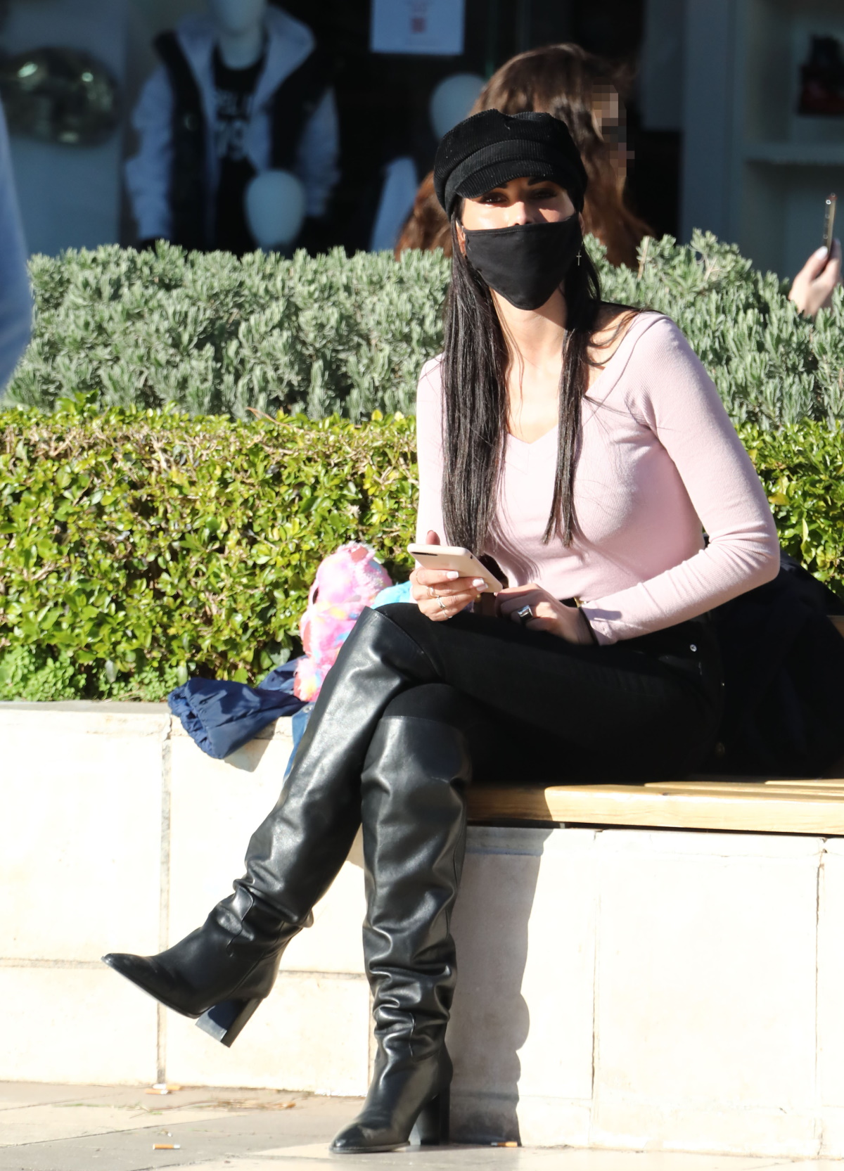 Η σύζυγος του Αντώνη Σρόιτερ προτίμησε μαύρο παντελόνι, ροζ τοπ κι ένα μαύρο καπέλο για την εμφάνισή της. Ολοκλήρωσε το look της με το πιο κολακευτικό στυλ σε μπότες για την εξόρμησή της.