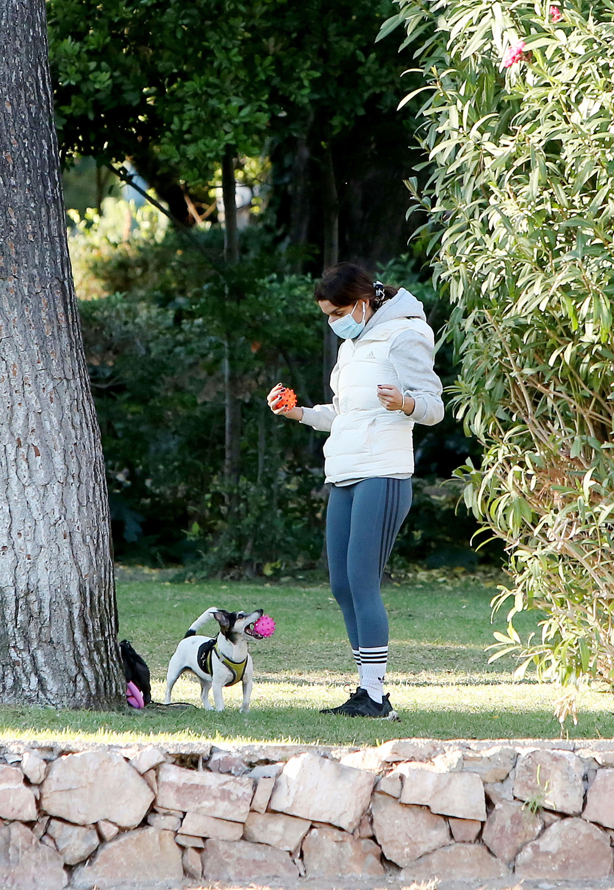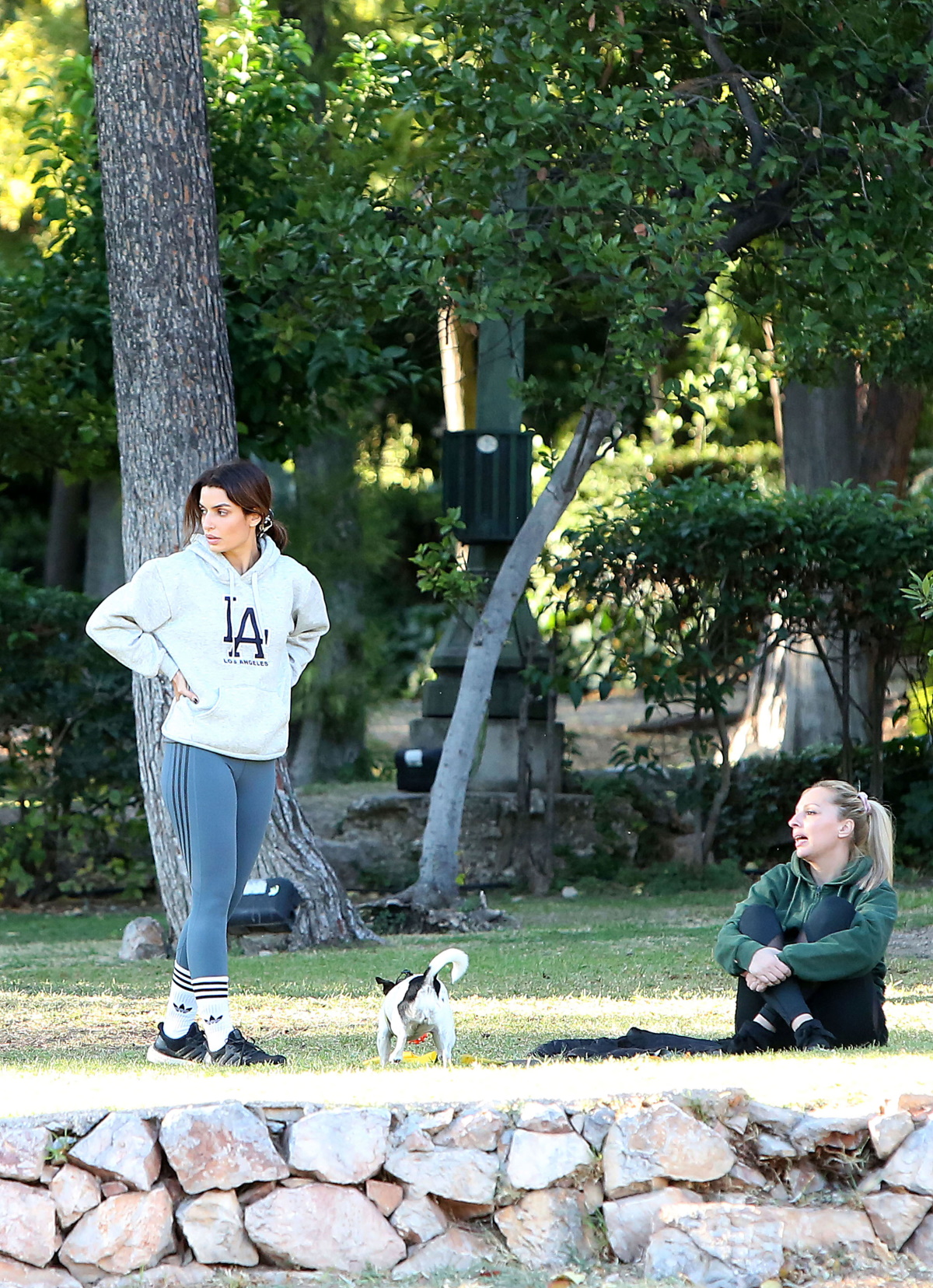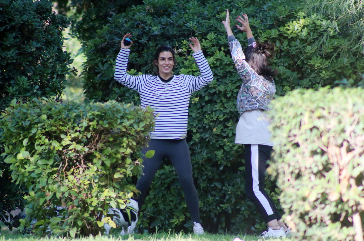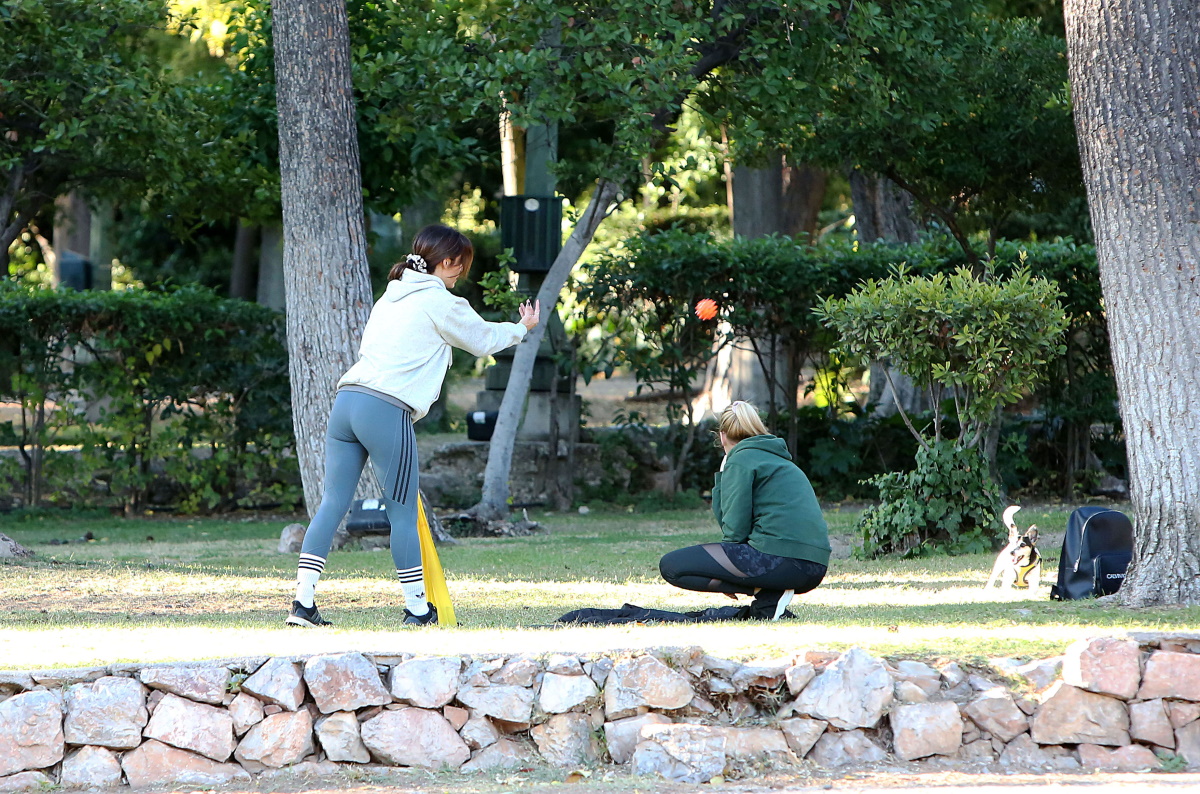 Επέλεξε να κάνει τη γυμναστική της στο Ζάππειο βγάζοντας παράλληλα βόλτα και το σκυλί της, τη Στέλλα. Ο φωτογραφικός φακός απαθανάτισε την ηθοποιός δύο φορές, με αθλητική εμφάνιση η οποία περιλαμβάνει κολάν, να κάνει τις ασκήσεις γυμναστικής στην ύπαιθρο.