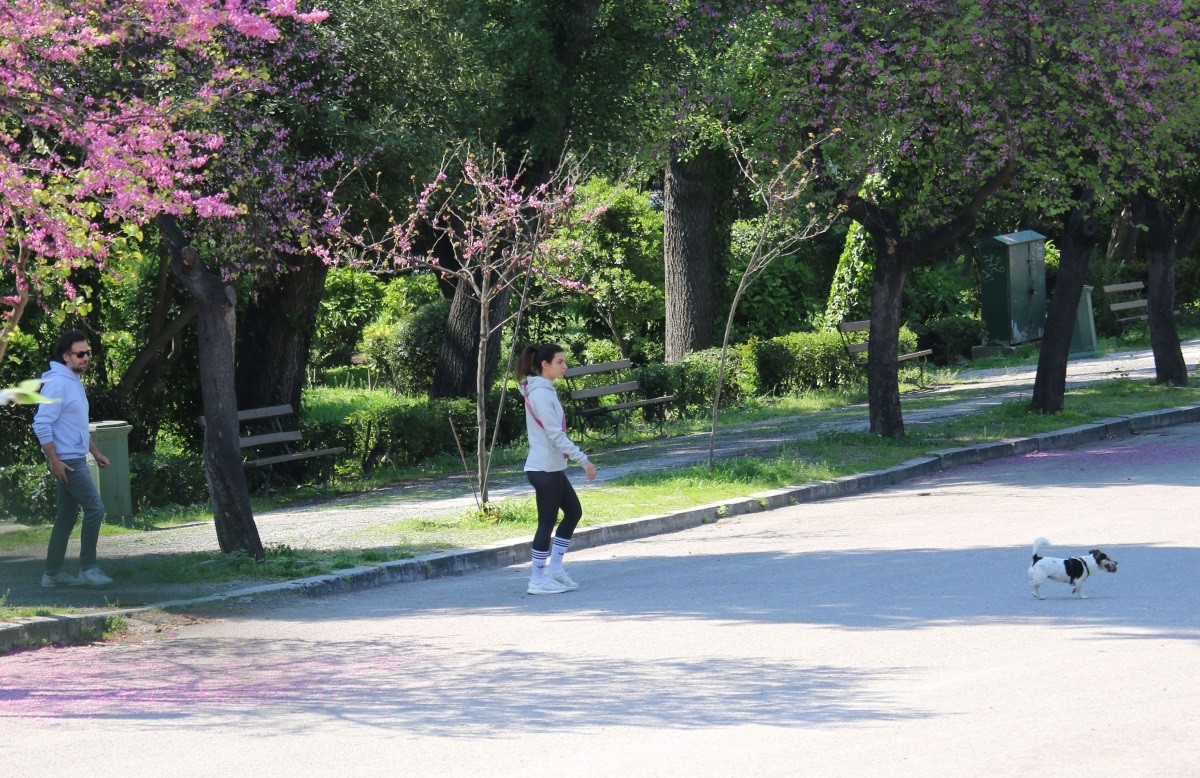 Από το καθημερινό τους πρόγραμμα δεν έλειπαν και οι μικροί περίπατοι στη γύρω περιοχή αφού η ηθοποιός έβγαζε βόλτα το σκύλο της, τη Στέλλα. Ο φωτογραφικός φακός απαθανάτισε το ζευγάρι σε μία από τις πρόσφατες εξορμήσεις τους στο Ζάππειο μαζί με τη Στέλλα, το σκύλο της Τόνιας.