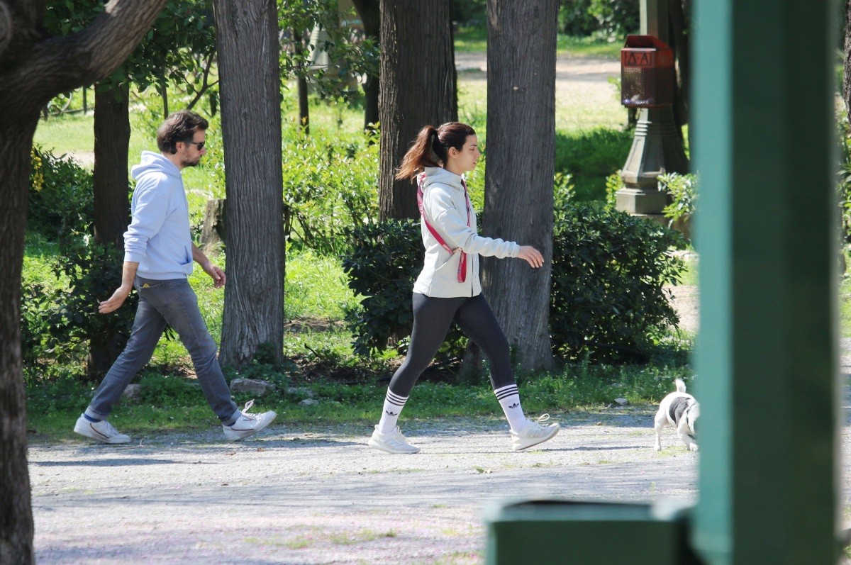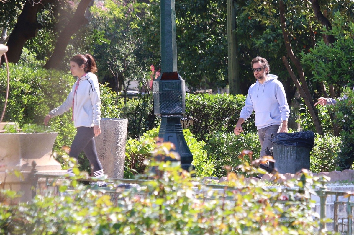 Από το καθημερινό τους πρόγραμμα δεν έλειπαν και οι μικροί περίπατοι στη γύρω περιοχή αφού η ηθοποιός έβγαζε βόλτα το σκύλο της, τη Στέλλα. Ο φωτογραφικός φακός απαθανάτισε το ζευγάρι σε μία από τις πρόσφατες εξορμήσεις τους στο Ζάππειο μαζί με τη Στέλλα, το σκύλο της Τόνιας.