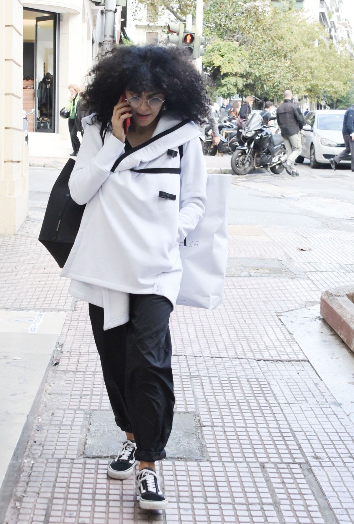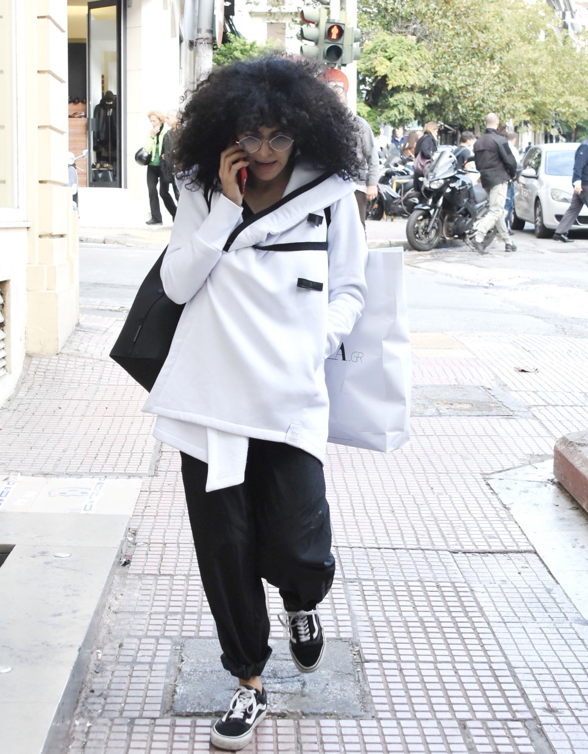 Την εμφάνιση ολοκλήρωσε με τ΄αγαπημένα μας μαύρα old school Vans sneakers και πολυγωνικά γυαλιά ηλίου. Αυτή την περίοδο φαίνεται πως είναι μόνη, αφού τον προηγούμενο μήνα κυκλοφόρησε η είδηση της νέας συντρόφου του Πάνου Μουζουράκη. Ωστόσο κανείς από τους δυο δεν έχει μιλήσει για τον χωρισμό. Πάντως οι σακούλες της αποτελούν τον ορισμό του shopping therapy!