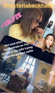 Ο 44χρονος πρώην ποδοσφαιριστής, αστειεύθηκε μάλιστα, πως δεν ήξερε πού να εστιάσει την προσοχή του: Στη Victoria που τραβούσε φωτογραφίες τον εαυτό της ή στο ipad του, όπου παρακολουθούσε το The Crown στο Netflix.