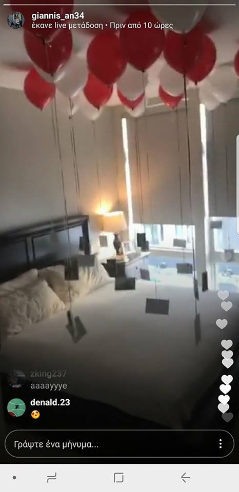 Ο παίκτης των Bucks είχε φουσκώσει μπαλόνια σε σχήμα καρδιάς με ήλιο μέσα στην κρεβατοκάμαρα και στα κορδόνια τους είχε κρεμάσει φωτογραφίες του ίδιου και της Mariah από διάφορες φάσεις της σχέσης τους, της έγραψε μια κάρτα που στον κατακόκκινο φάκελο έγραφε “Babe” και κάπου στο σπίτι υπήρχε και ένα #giantteddybear.