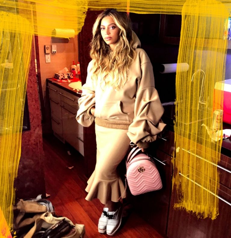 Στηρίζοντας την αδελφή της Σολάνζ, η Μπιγιονσέ παρακολούθησε το FYF Fest και μοιράστηκε εικόνες από τo σύνολό της στο Beyonce.com. Για την πρώτη της εμφάνιση μετά την εγκυμοσύνη, η τραγουδίστρια φόρεσε ένα φούτερ με κουκούλα της Johanna Ortiz και αντίστοιχη peplum φούστα.