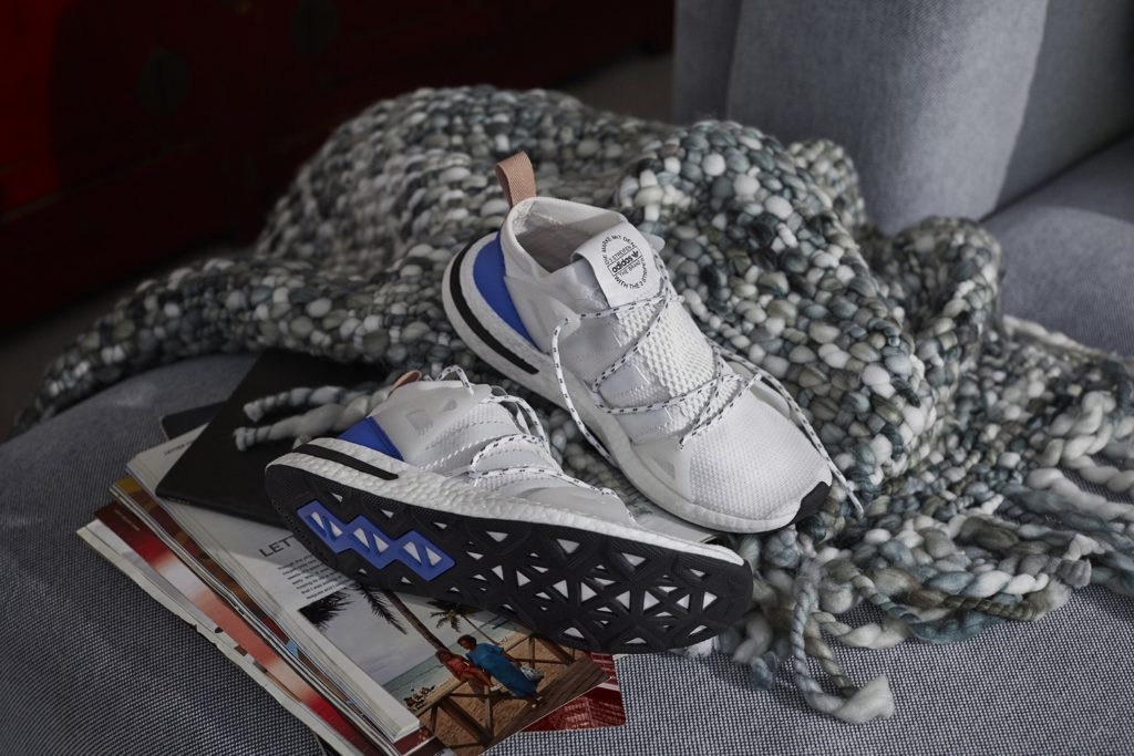 Το παπούτσι διαθέτει ένα καθαρό επάνω μέρος, με τις χαρακτηριστικές τρεις ρίγες του brand να κάνουν διακριτικά την εμφάνισή τους. Η εντυπωσιακή neoprene σόλα και τα ανατρεπτικά, minimal κορδόνια ορίζουν το αισθητικό statement, ενώ η ενδιάμεση σόλα Boost ™αποτελεί το τεχνολογικό highlight του νέου sneaker.