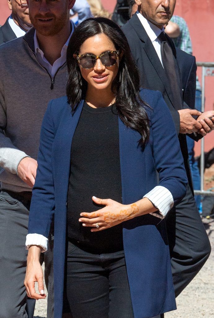 Κατά τη διάρκεια της επίσκεψης στο ορεινό χωριό, η Μέγκαν Μαρκλ πήρε μέρος σε μια τελετή χέννας και άφησε τα κορίτσια να της σχεδιάσουν ένα λουλουδάτο ντεσέν στο χέρι της για να γιορτάσει την εγκυμοσύνη της.