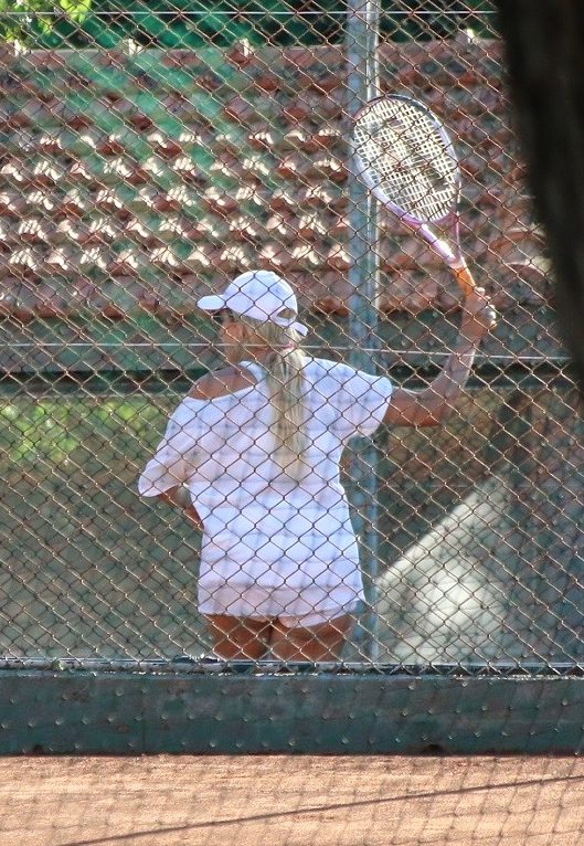 Αυτό που επίσης δεν είχαμε δει μέχρι σήμερα είναι την Κωνσταντίνα Σπυροπούλου να παίζει τένις, ερασιτεχνικά φυσικά αφού και η ίδια δεν είχε εκδηλώσει ποτέ, ακόμη και κατά τη συμμετοχή της στο Survivor ότι είναι τύπος που αγαπά τα σπορ. Παρόλα αυτά, με τα πλέον κατάλληλα ρούχα για αντισφαίριση ο φωτογραφικός φακός την απαθανάτισε στο Καβούρι να αγωνίζεται ένα καλοκαιρινό πρωινό με τη ρακέτα της.
