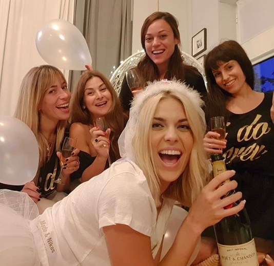 Η Μαντώ Γαστεράτου παντρεύεται τον καλό της και οι φίλες της, ετοίμασαν πάρτι έκπληξη για να γιορτάσουν το γεγονός. Με κουμπάρα τη δημοσιογράφο Μπάγια Αντωνοπούλου και μια φιλία να τις δένει πολλά χρόνια, η κοριτσοπαρέα είχε φροντίσει για τα πάντα, από το μέρος του πάρτι μέχρι το outfit της μέλλουσας νύφης. Σε βίντεος που δημοσίεσε η Μαντώ στα stories της στο Instagram, μας ενημέρωσε ότι δεν είχε ιδέα για όσα ετοίμαζαν οι φίλες της, οι οποίες βρέθηκαν ξαφνικά στο σπίτι της με τα απαραίτητα για ένα bachelorette party, δηλαδή σαμπάνιες, μπαλόνια και νυφικά αξεσουάρ. Βλέπουμε στα βίντεος τη Μαντώ να φοράει μίνι, τούλινη, λευκή φούστα, ένα λευκό μπλουζάκι το οποίο αναγράφει με χρυσά γράμματα τη λέξη “Bride” και μια bridal τιάρα, ενώ η χαρά της είναι έκδηλη.