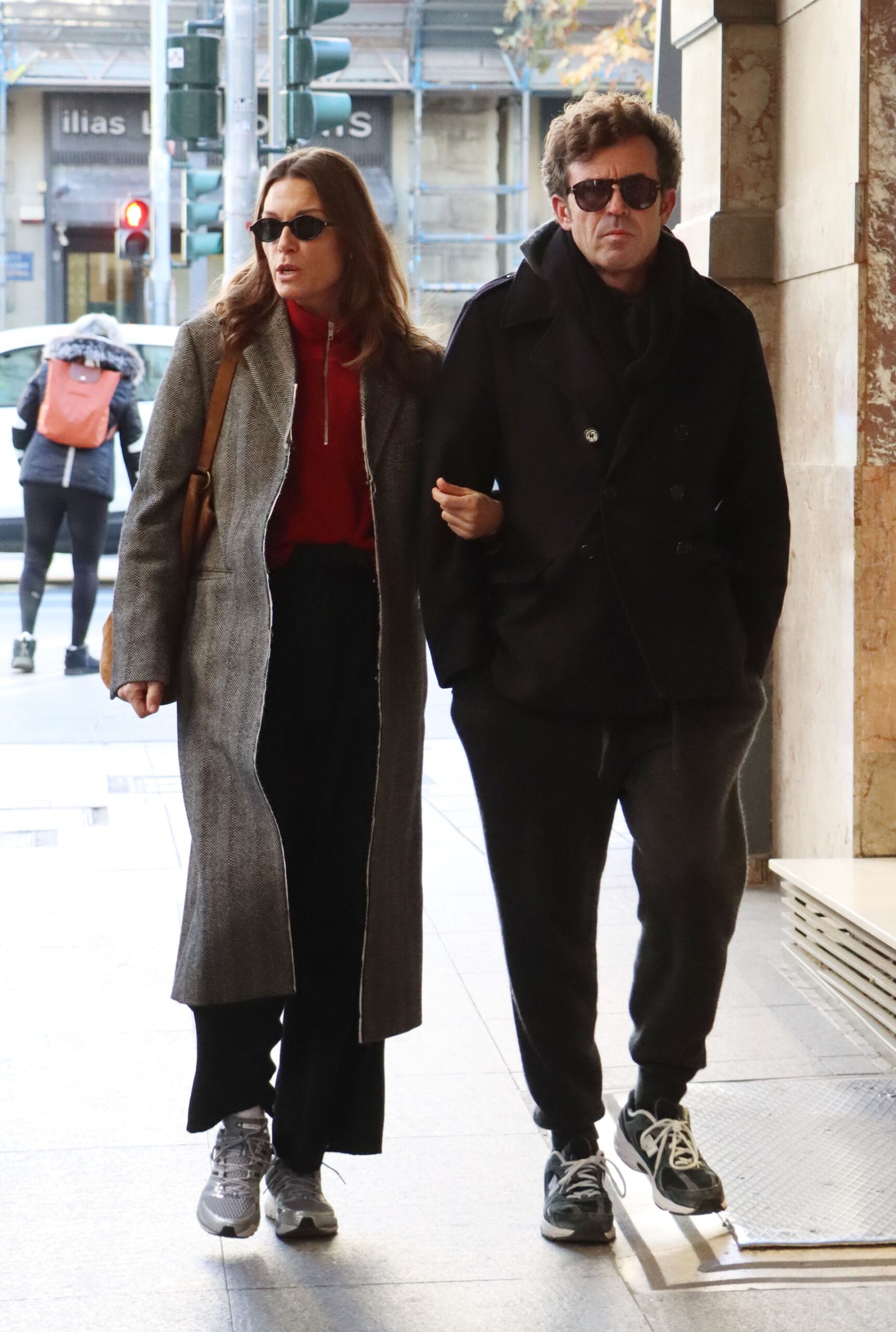 Η μαεστρία της απλής εμφάνισής της αντικατοπτρίζεται ιδιαίτερα στο τοπ: μια πλεκτή half-zip μπλούζα σε έντονο κόκκινο την οποία συνδύασε με ένα ψηλόμεσο παντελόνι σε loose γραμμή κι ένα μακρύ μάλλινο παλτό με μοτίβο ψαροκόκκαλου.