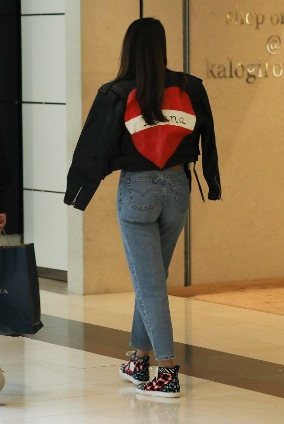 Εκτός από αυτό το statement και προφανώς custom made κομμάτι, η κριτής του GNTM φόρεσε ένα ψηλοκάβαλο moms denim παντελόνι και sneakers. Δεν έχουμε leather jacket με το όνομά μας γραμμένο στην πλάτη μέσα σε καρδιά αλλά από εμάς είναι ναι.
