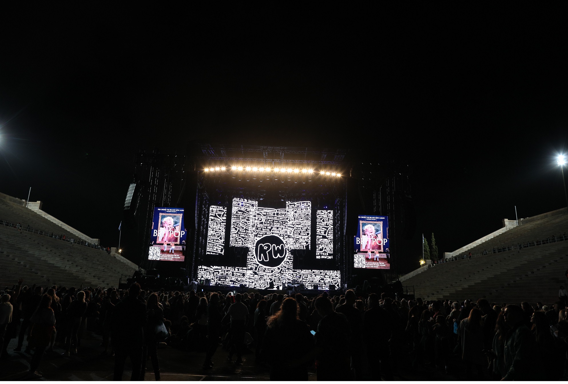 Μπορεί το βράδυ της Πέμπτης, 2 Οκτωβρίου, να ήταν αρκετά δροσερό, με την υγρασία από τη βροχή να τρυπά τα κόκκαλα, αυτό όμως δεν φαίνεται να πτόησε τους χιλιάδες θαυμαστές του Robbie Williams, που βρέθηκαν στο Καλλιμάρμαρο Παναθηναϊκό Στάδιο, για να ακούσουν τις μουσικές και τα τραγούδια του αγαπημένου τους καλλιτέχνη.