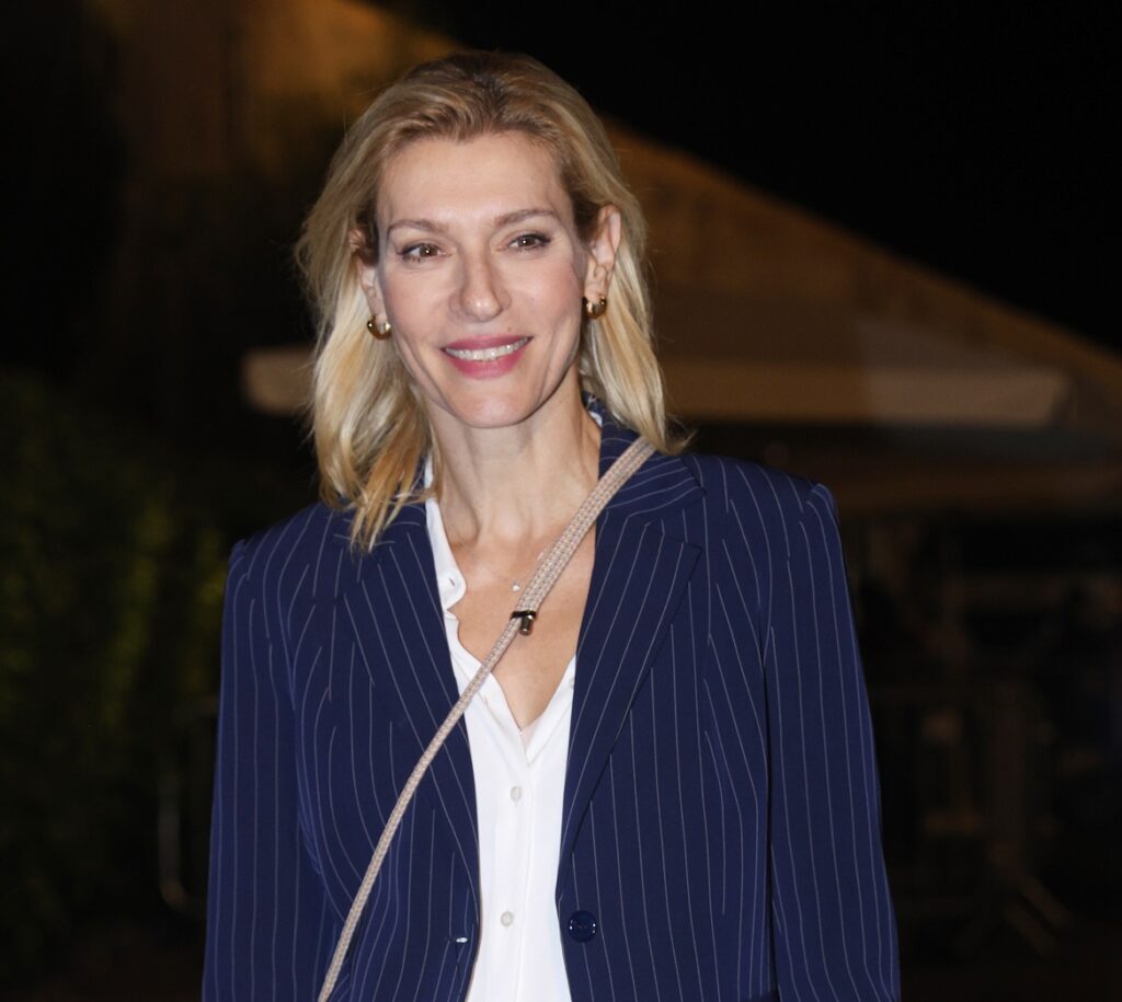 Η Ζέτα Δούκα βρέθηκε στο χώρο της συναυλίας φορώντας ένα άνετο και άκρως κατάλληλο για την περίσταση σύνολο, το οποίο συνέθεταν ένα στενό denim παντελόνι, ένα λευκό, μακρύ πουκάμισο, ένα σκούρο μπλε σακάκι και λευκά, πάνινα sneakers.