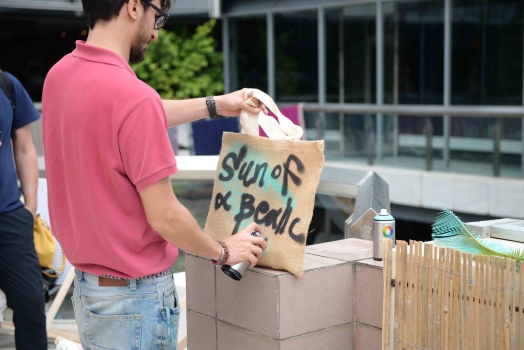 Τα φρέσκα patterns της νέας συλλογής Sun of a Beach έδωσαν έμπνευση στο δυναμικό graffity με την υπογραφή του Cacao Rocks, που έγινε το wall of fame της βραδιάς φιλοξενώντας μόνο λαμπερά χαμόγελα.  Ο ανερχόμενος graffity artist, που έχει ήδη γίνει γνωστός σε όλη την Ευρώπη, ολοκλήρωσε την τοιχογραφία του στη διάρκεια του party, δίνοντας στους καλεσμένους την ευκαιρία να δουν live την τεχνική του, ενώ δημιούργησε για αυτούς on the spot και custom τσάντες Sun of a Beach.