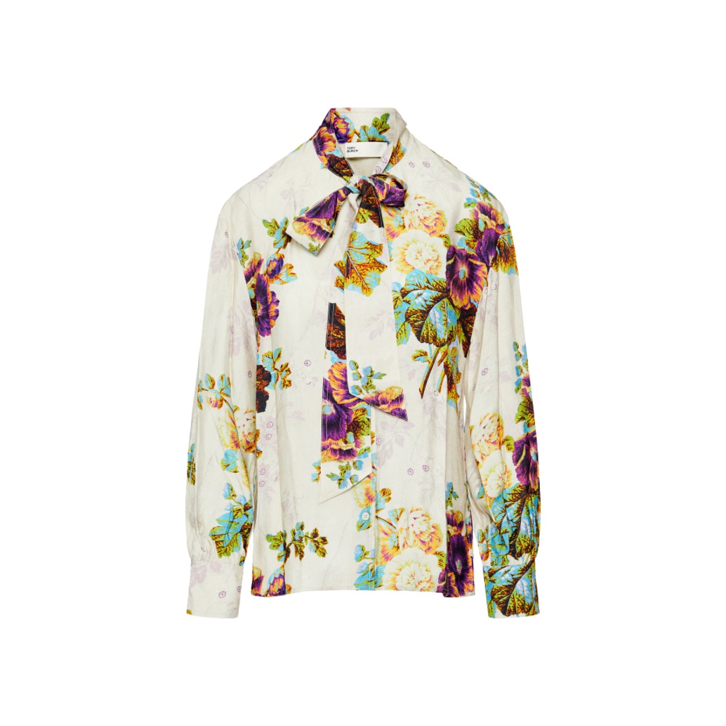 Mια ξεχωριστή μπλούζα διακοσμημένη με φιόγκο και με ανθισμένο μοτίβο που μπορεί να λειτουργήσει σε κάθε σεζόν. Εμείς θα την φορέσουμε μέσα από ένα τουίντ σακάκι και το αγαπημένο μας τζιν.