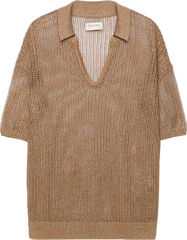 Στο πιο θηλυκό κομμάτι της συλλογής, συναντούμε απαλές γραμμές και ουδέτερη παλέτα, πτυχώσεις και ελαφριά διακόσμηση με lurex tricots. Τα νήματα της Falconeri σηματοδοτούν τη μετατόπιση από τη μία εποχή στην άλλη αποζητώντας σταθερά μία εκλεπτυσμένη κομψότητα.