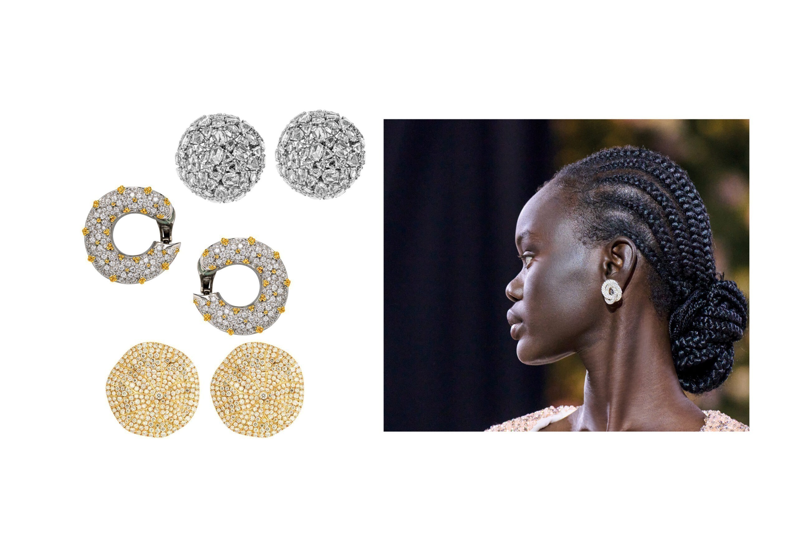 Σκουλαρίκια σε στρογγυλό σχήμα γεμάτα διαμάντια και φινέτσα. Η μικρή πινελιά χλιδής στα αυτιά.