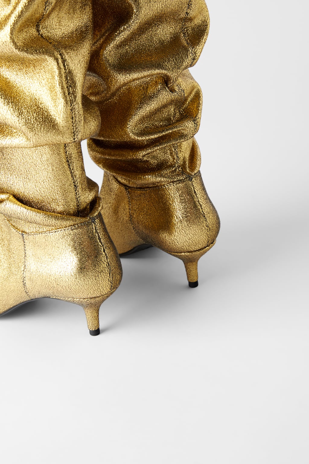 Στη νέα κολεξιόν του brand Zara για το φθινόπωρο χειμώνα 2019 ξεχώρισε ένα ζευγάρι χρυσαφί μπότες με kitten τακούνι και μυτερό τελείωμα, οι οποίες όμως έγιναν σχεδόν sold out μόλις λίγα 24ωρα μετά την κυκλοφορία τους στο e shop της εταιρίας.