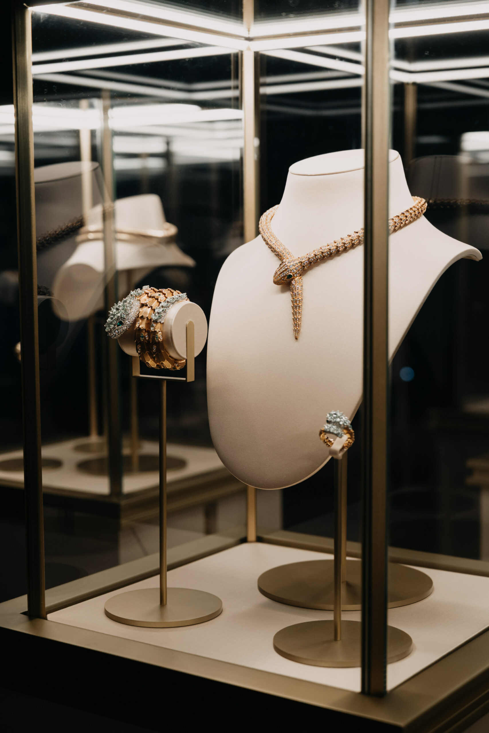 Η Χριστιάνα, ο Βασίλης και η Αναστασία Καίσαρη υποδέχονταν τους ξεχωριστούς καλεσμένους, οι οποίοι απολαμβάνοντας το welcome cocktail τους είχαν την ευκαιρία να ανακαλύψουν μοναδικές High Jewelry δημιουργίες BVLGARI που έφτασαν στην Ελλάδα αποκλειστικά για την εκδήλωση. Μοναδικά κοσμήματα και ρολόγια iconic συλλογών όπως Serpenti, Tubogas, και Divas’ Dream αναδείχτηκαν με τον καλύτερο τρόπο σε ένα ειδικά διαμορφωμένο installation με οκτώ custom made βιτρίνες.