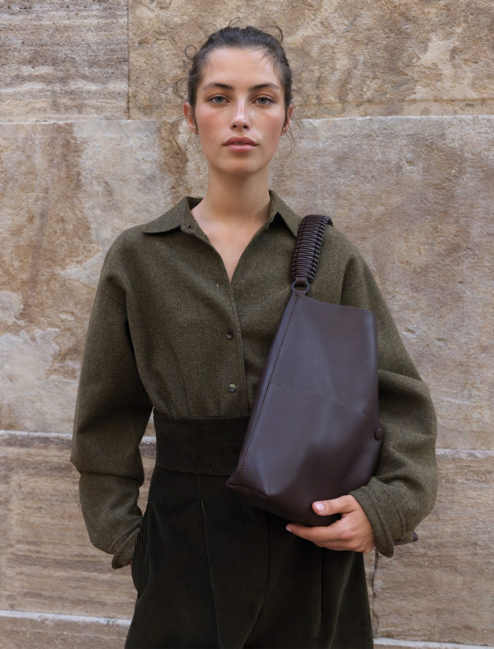 Το καφέ κάνει comeback και μας θυμίζει γιατί το αγαπήσαμε εξαρχής. Δίπλα του, διαχρονικά χρώματα όπως το γκρι, το κεραμιδί, το πούρο, το καμηλό και φυσικά το all time classic μαύρο. Στα λεία δέρματα, η διάθεση γίνεται πιο σοφιστικέ: μπορντώ του κρασιού, κεραμιδί, μαύρο. Αλλά η μεγάλη έκπληξη της σεζόν; Το σουέντ. Ζεστό, βελούδινο, με καφέ και βουργουνδί αποχρώσεις, επιστρέφει δυναμικά σε μικρές τσάντες αλλά και στη νέα, χαλαρή oversized tote που λέει πολλά χωρίς να προσπαθεί.