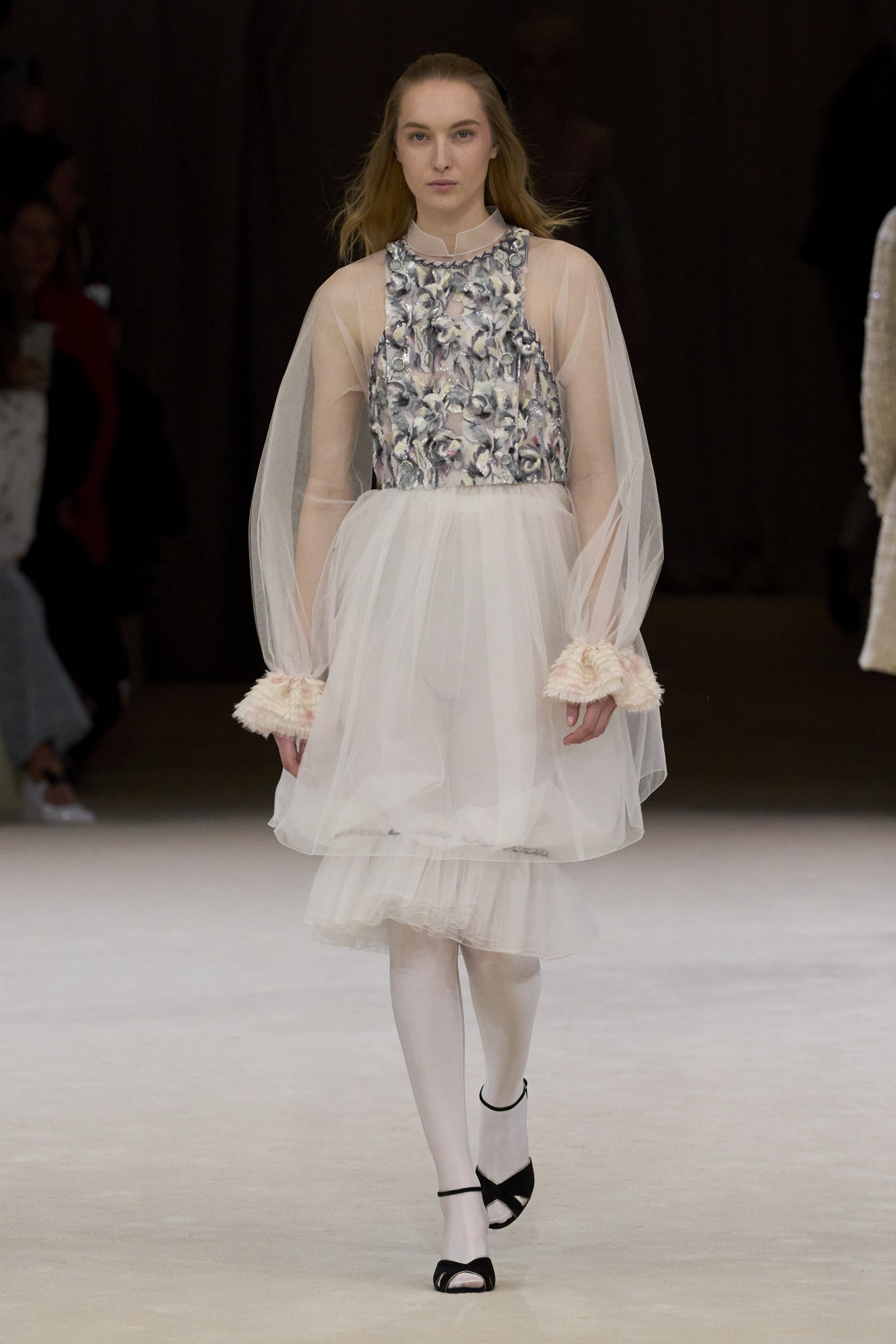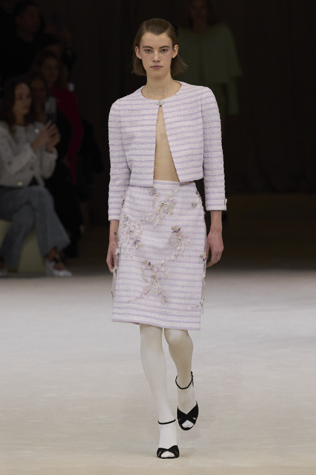 Η Virginie Viard επέμεινε στις λεπτομέρειες, στην «ομορφιά μέσα στην ατέλεια του χρόνου»,  που εκφράστηκε μέσα από σύνολα που θύμιζαν Αρλεκίνους, ημιτελή νυφικά και μεσοφόρια, σακάκια που πάτησαν στο κλασικό πατρόν του Οίκου για να αναδείξουν μια πιο παιχνιδιάρικη, κοριτσίστικη αίσθηση και, φυσικά, σύνολα από τουίντ σε διάφορα μήκη και στιλ.