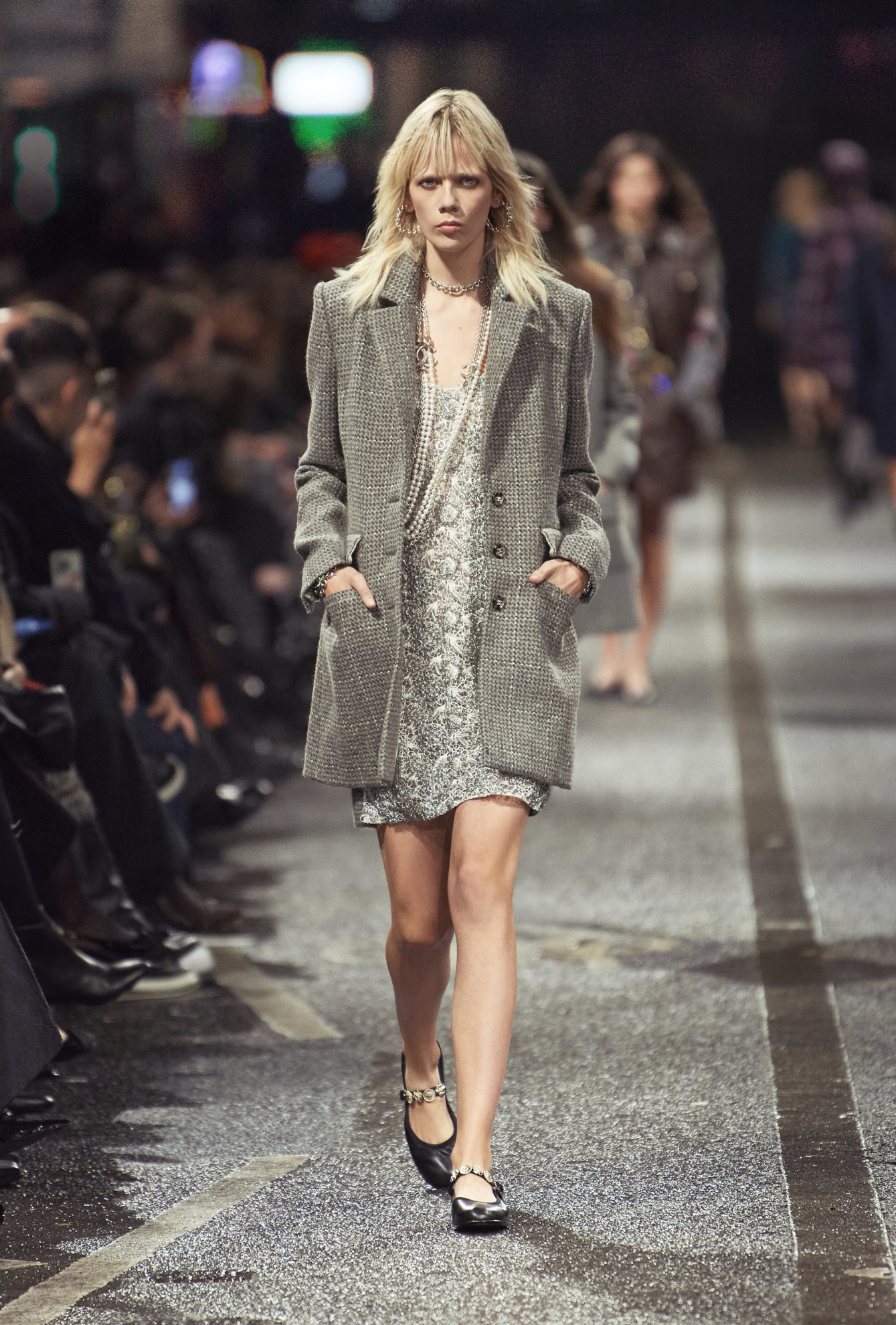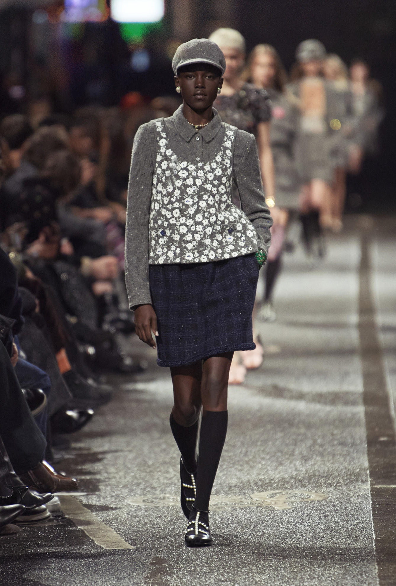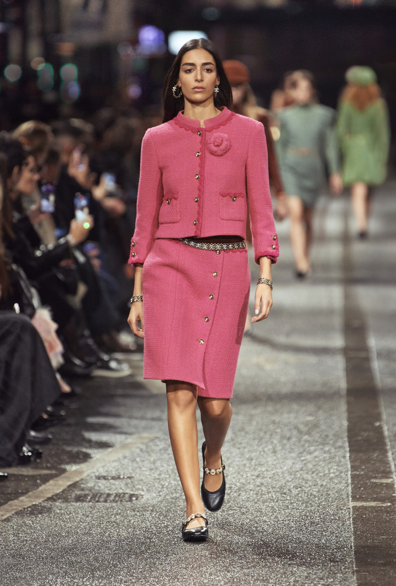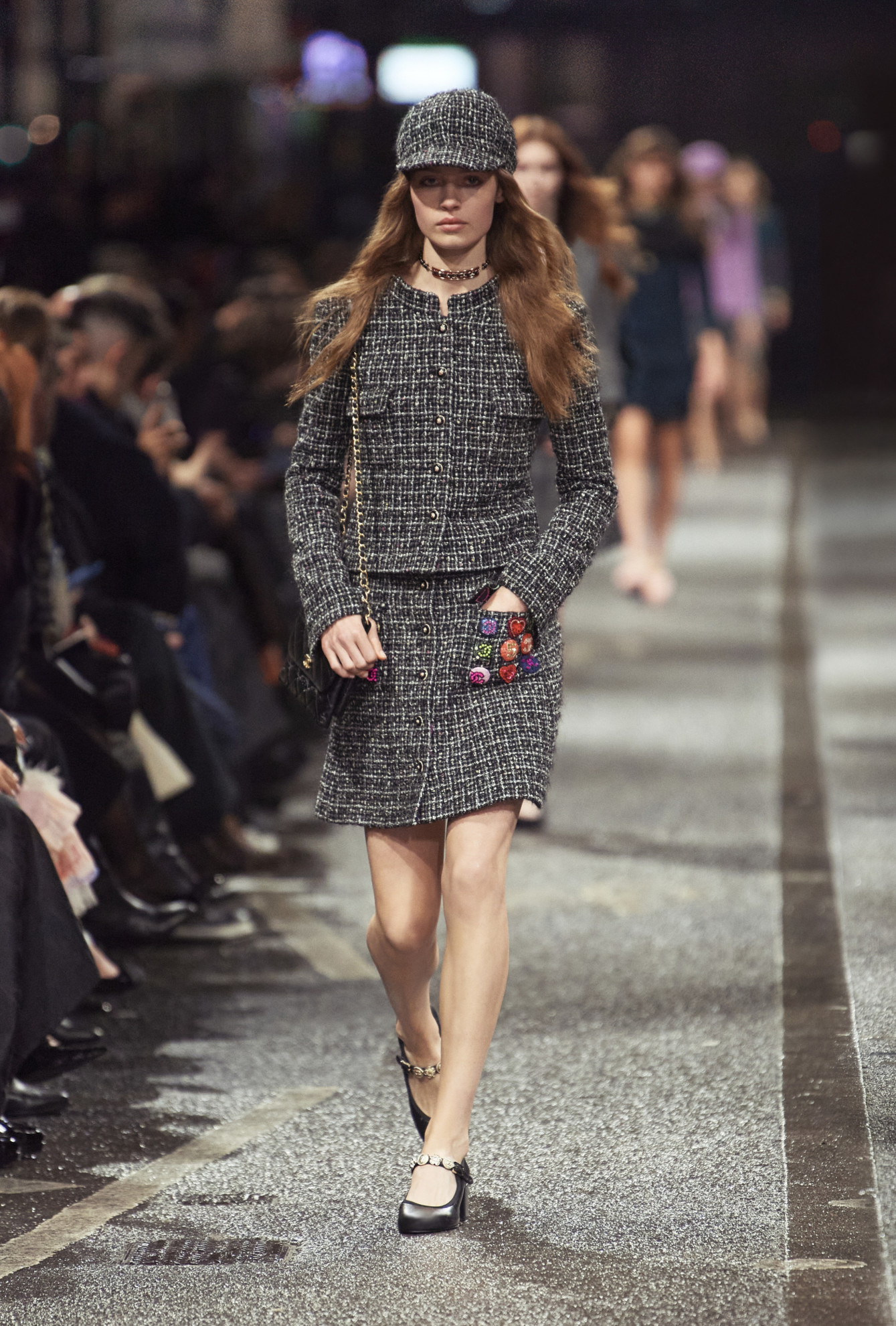 «Για μένα, το Μάντσεστερ είναι η πόλη της μουσικής», είπε η Viard. «Διεγείρει την εξερεύνηση της δημιουργικότητας». «Το tweed πρωταγωνιστεί σε αυτή τη συλλογή. Σκέφτηκα πολύ τη Gabrielle Chanel, αλλά δεν ήθελα να αναδημιουργήσω την εμφάνιση της Coco, όταν φορούσε τα τζάκετ του Δούκα του Westminster. Πήρα το σύνθημά μου από την Coco που έβαλε χρώμα στα τουίντ της. Τους πρόσθεσα ένα ζωντανό, ποπ πνεύμα».