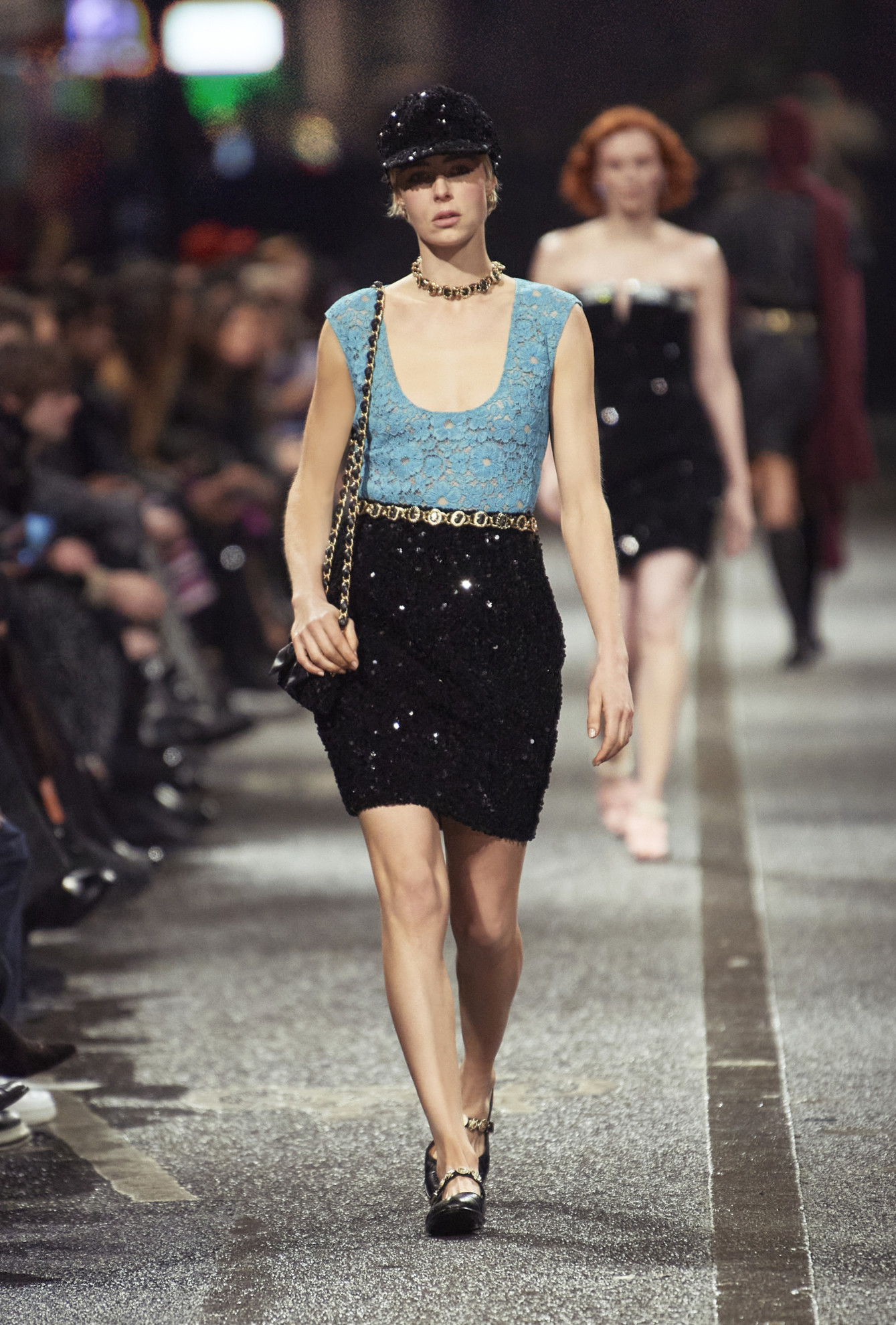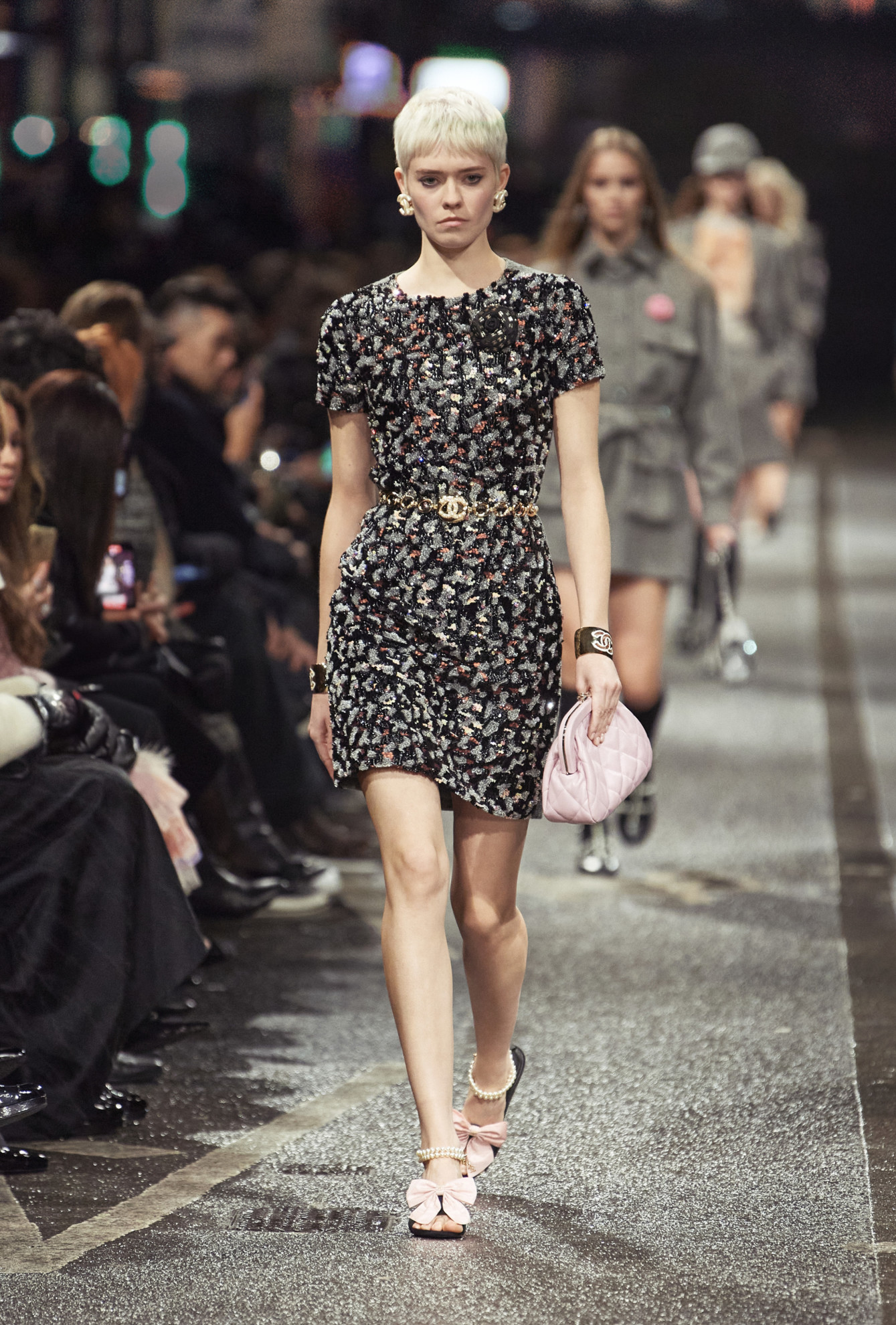 Το σκηνικό ήταν ένας βροχερός δρόμος στο Northern Quarter, όπου celebrities όπως η Tilda Swinton, ο Hugh Grant και η Kristen Stewart κάθισαν στην πρώτη σειρά και αργότερα διασκέδασαν στα μπαρ και τις παμπ που είχε κλείσει ο οίκος για τη βραδιά. Η Chanel επέλεξε την πόλη ως location της επίδειξης επειδή η ομάδα ήθελε να τιμήσει το Ηνωμένο Βασίλειο, αλλά ήθελε να πάει κάπου πιο απροσδόκητα από το Λονδίνο αλλά και λόγω του ότι η Viard εμπνεύστηκε από την πλούσια πολιτιστική ιστορία του Μάντσεστερ και ιδιαίτερα τη μουσική και τη νυχτερινή του ζωή.